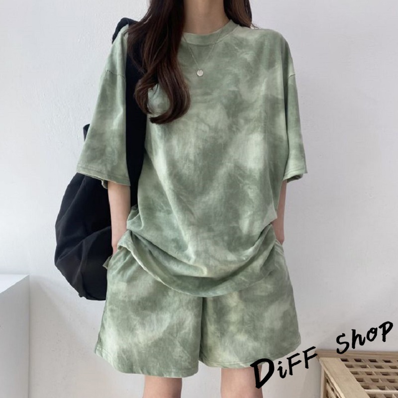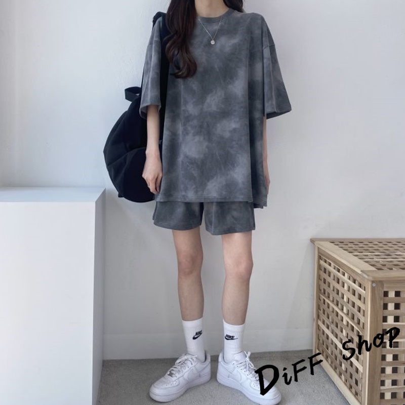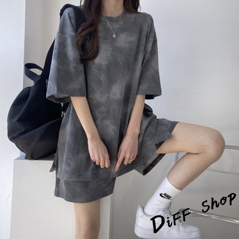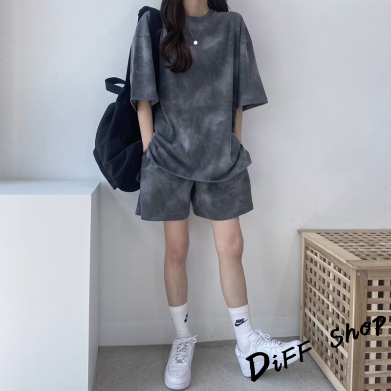 【DIFF】韓版小個子炫彩運動套裝 兩件套 短袖上衣 短袖t恤 女裝 顯瘦上衣 衣服【S181】【S181】綠色|【S181】灰色Individual SetsDiFF shop
