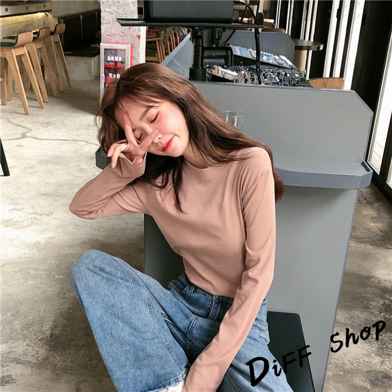 【DIFF】韓版簡約寬鬆素色高領長袖上衣 長袖t恤 女裝 衣服 素T 素色 顯瘦上衣 發熱衣【W103】【W103】黑色|【W103】白色|【W103】紫色|【W103】墨綠|【W103】姜黃|【W103】灰色|【W103】粉色|【W103】奶茶Thermal InnerwearDiFF shop