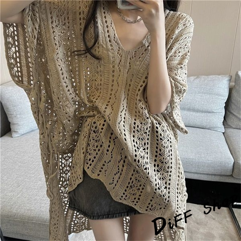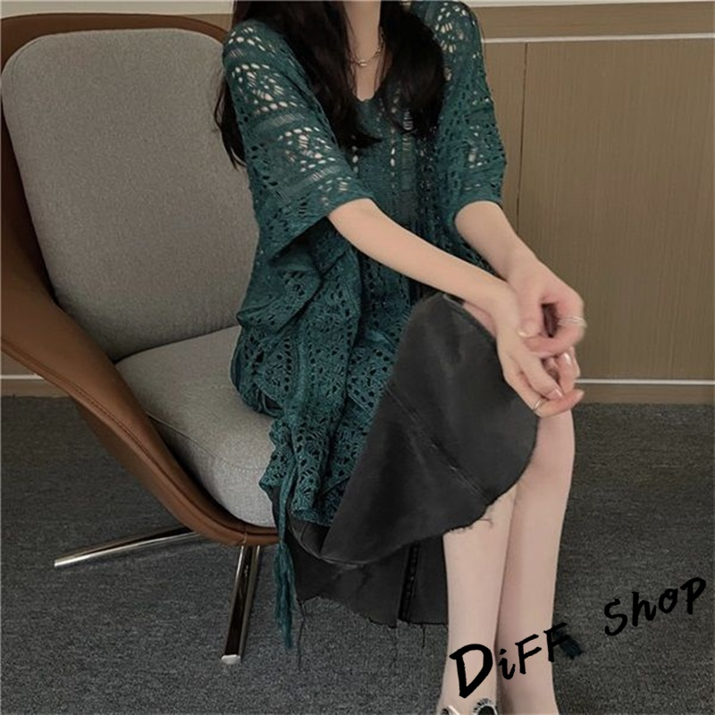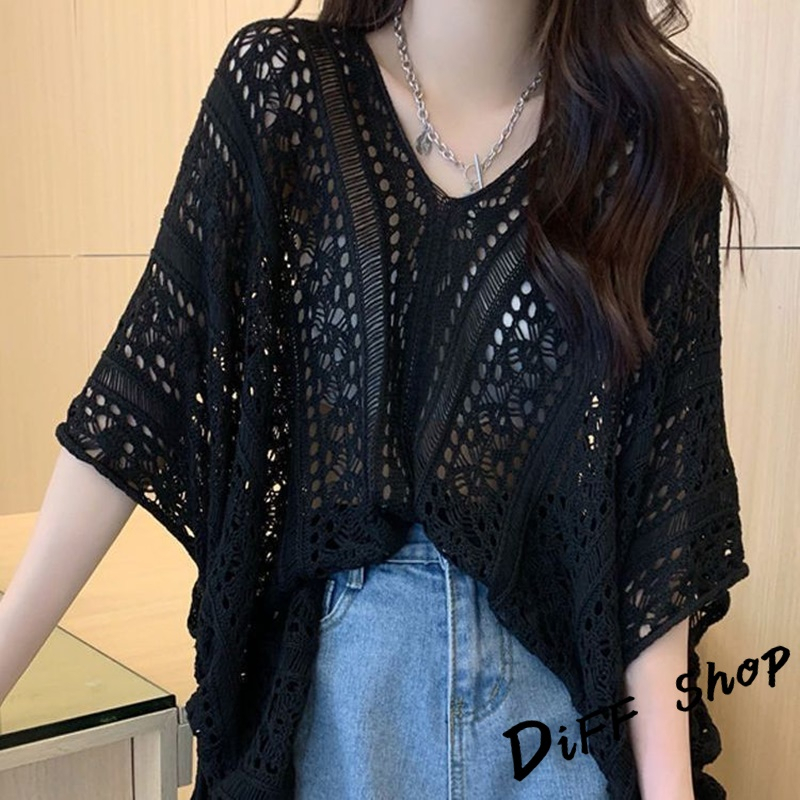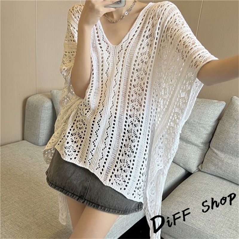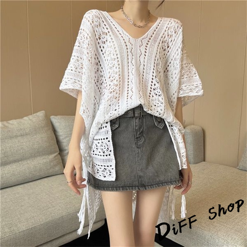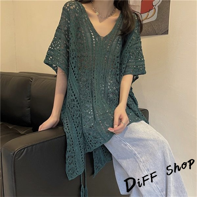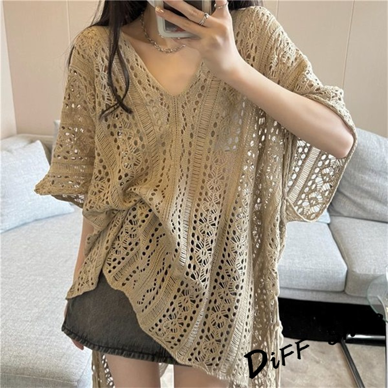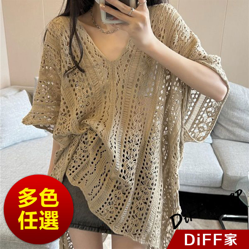 【DIFF】韓版復古鏤空小眾寬鬆顯瘦罩衫 針織上衣 短袖上衣 短袖t恤 女裝 顯瘦上衣 衣服 寬鬆上衣【T540】