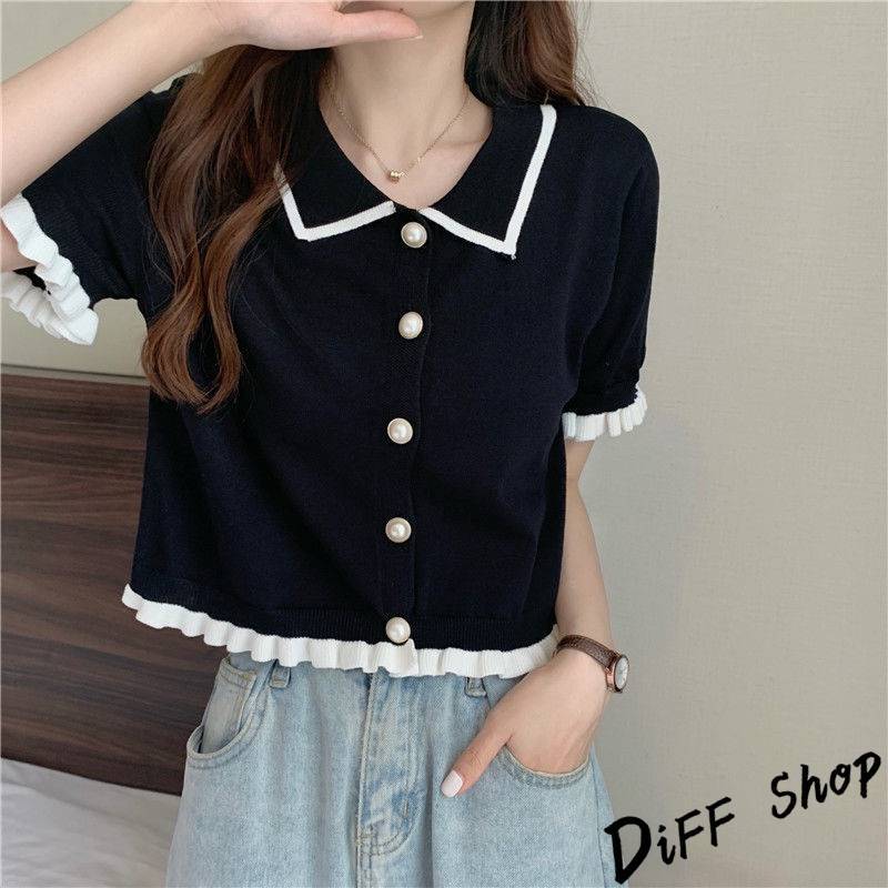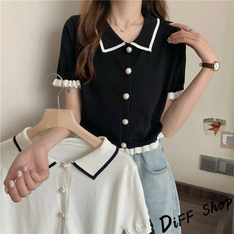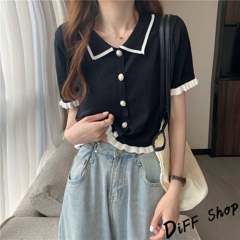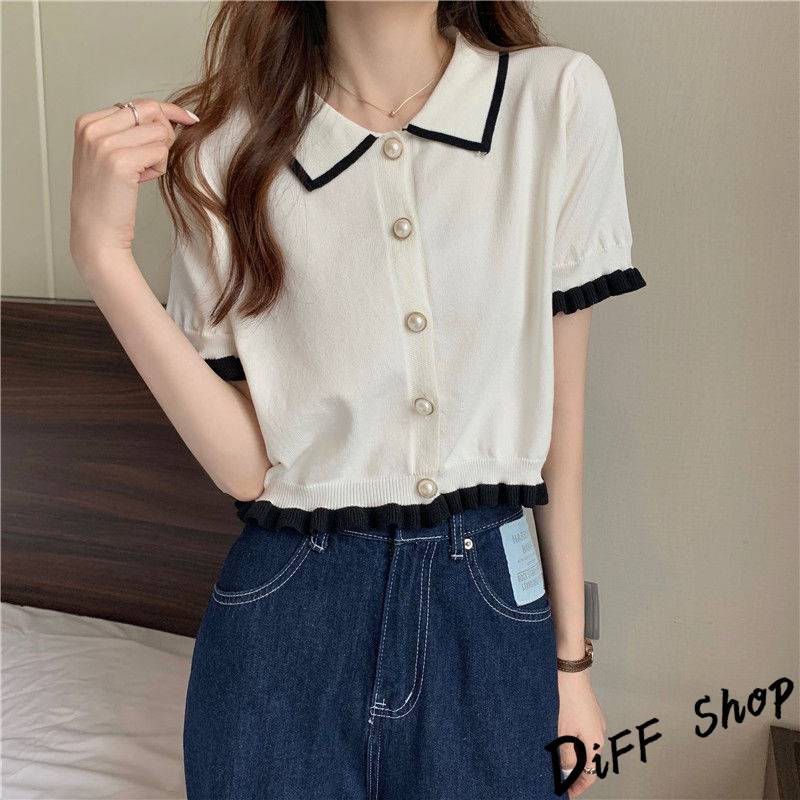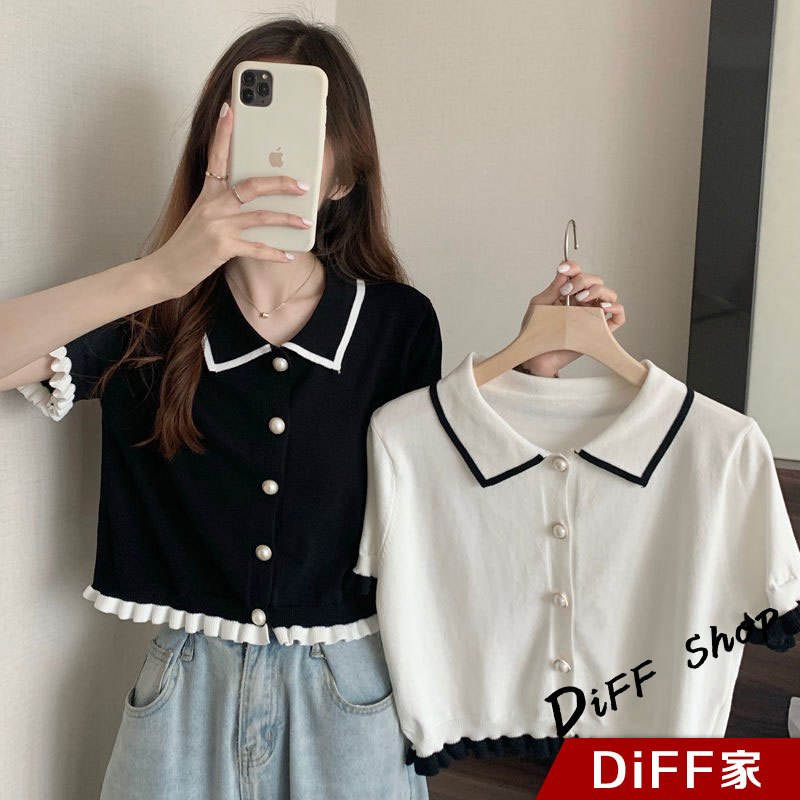 【DIFF】韓版寬鬆設計感小眾短版針織上衣 短袖上衣 短袖t恤 女裝 顯瘦上衣 衣服 短版上衣 短板上衣【T251】【T251】黑色|【T251】白色DiFF shop