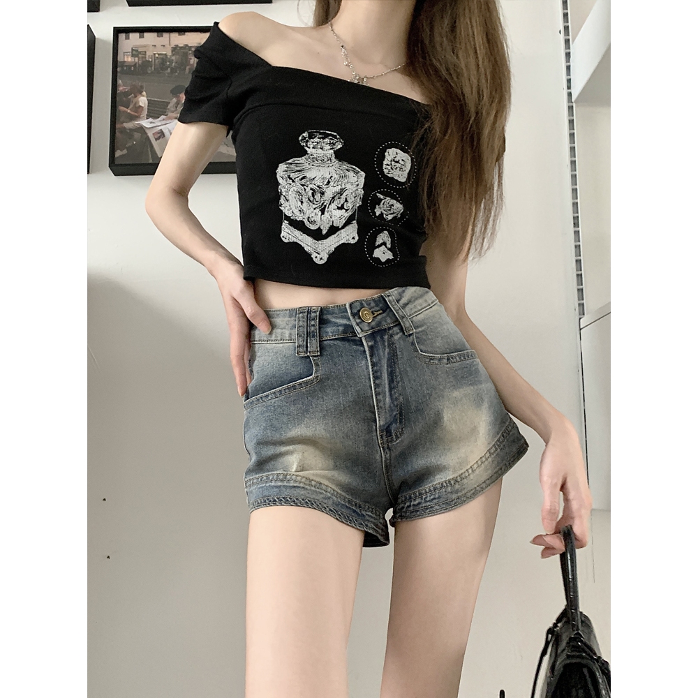 回頭率爆表!牛仔短褲 高腰牛仔褲 辣妹短裤 y2k褲子 梨形身材 顯瘦短褲 短牛仔褲 彈性短褲 防走光 夏天短褲 褲子女水洗復古藍,S|水洗復古藍,M|水洗復古藍,LShortsCHAOO 台北原創服飾品牌