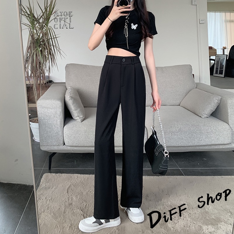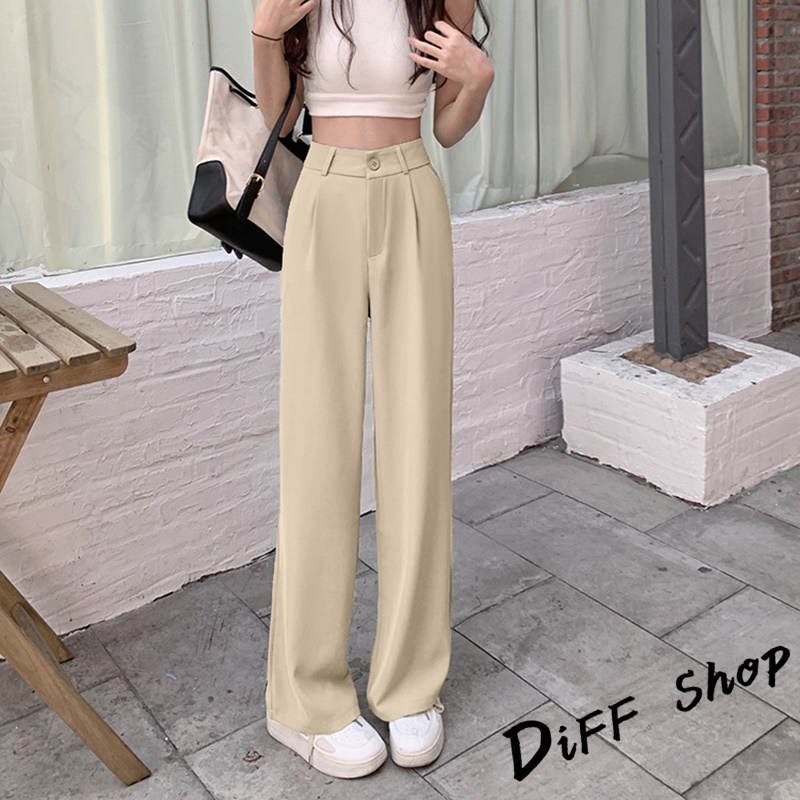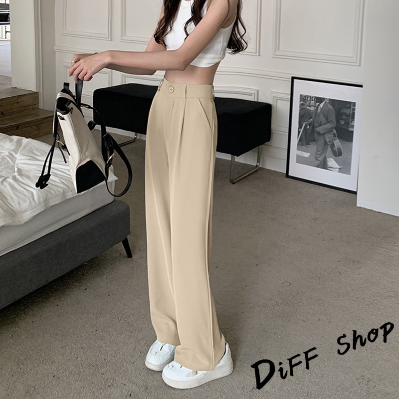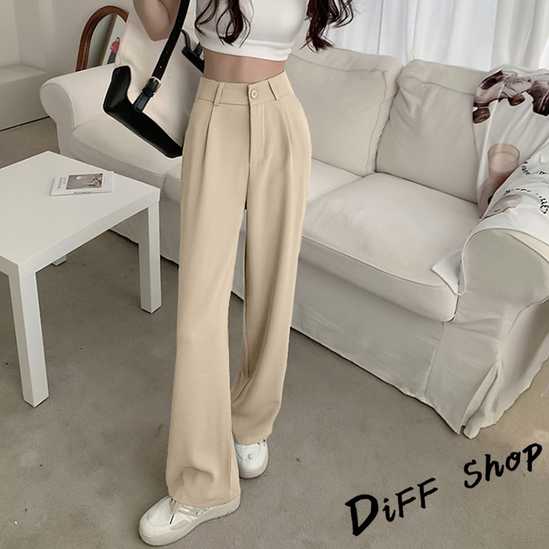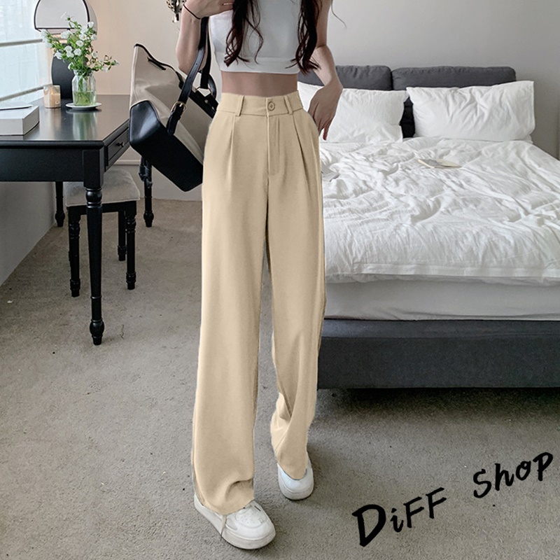 【DIFF】韓版高腰小個子垂感西裝褲 直筒褲 寬褲 褲子 長褲 休閒褲 女裝【P130】【P130】黑色S號|【P130】黑色M號|【P130】黑色XL號|【P130】杏色S號|【P130】杏色L號|【P130】杏色XL號|【P130】黑色L號|【P130】杏色M號PantsDiFF shop
