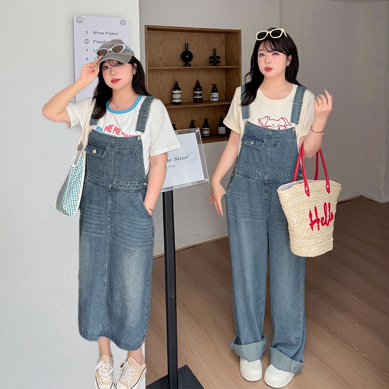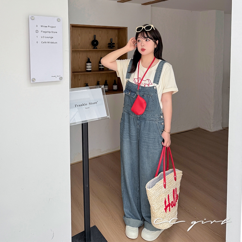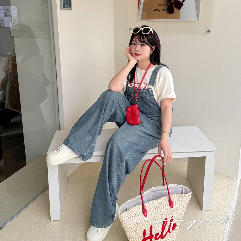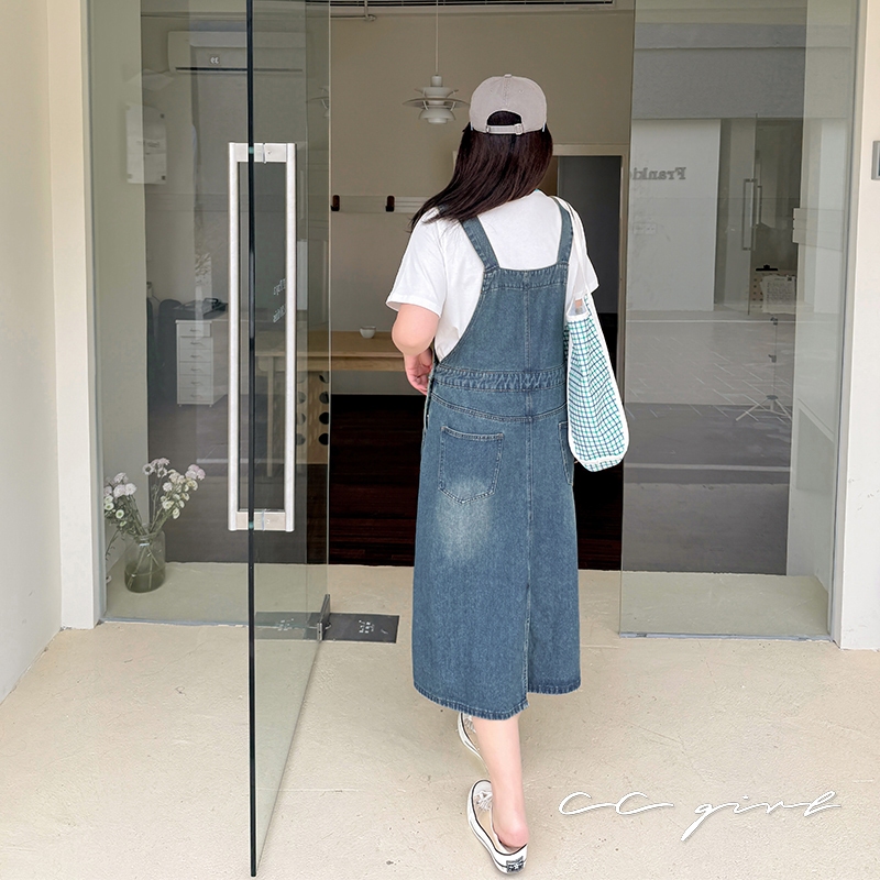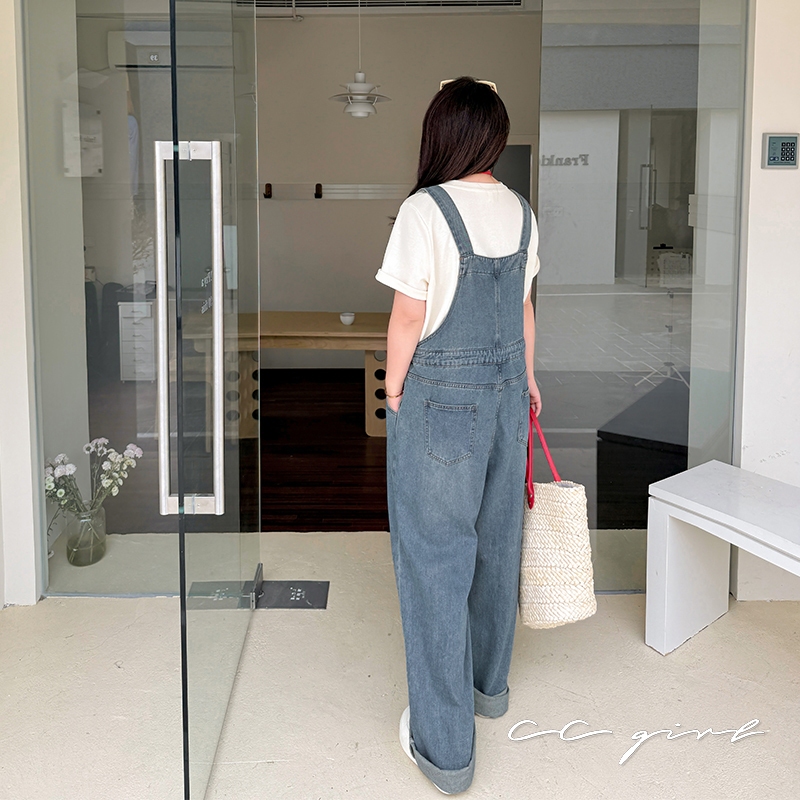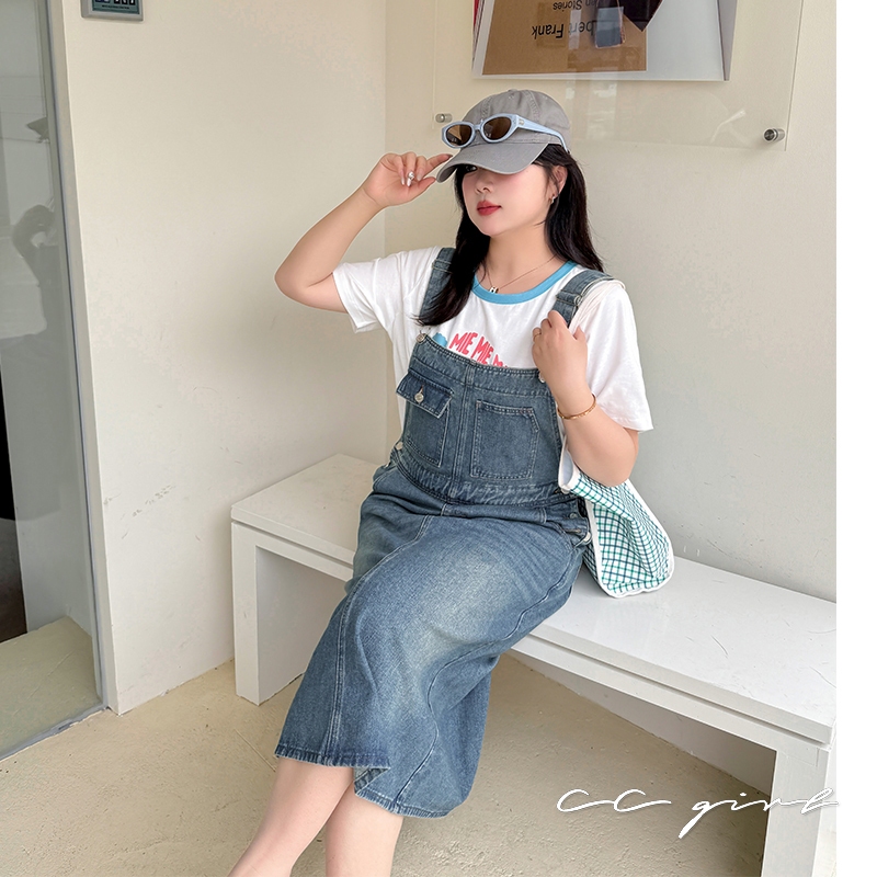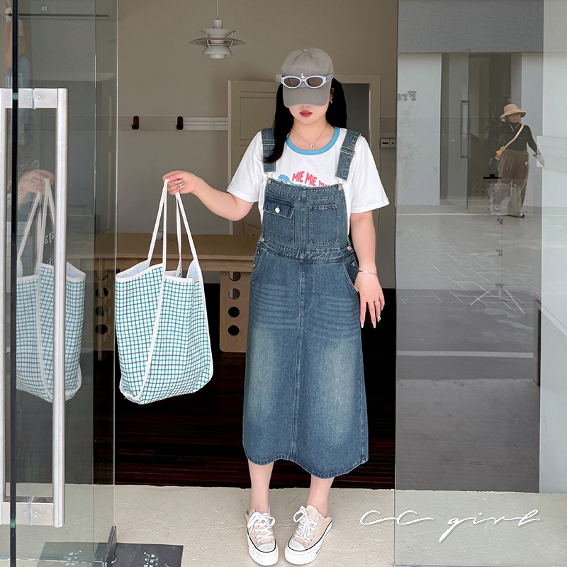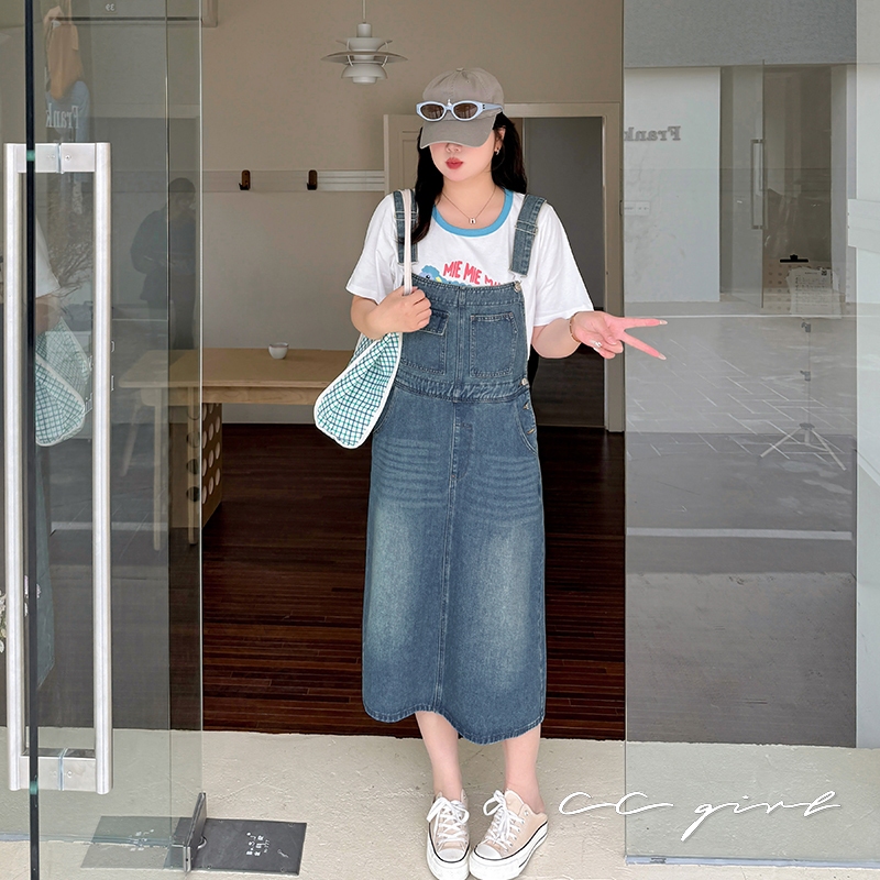 CCGIRL中大尺碼 復古俏皮感減齡寬鬆牛仔吊帶裙/褲(有後鬆緊+有口袋)-適XL~5L《20829裙+20830褲》