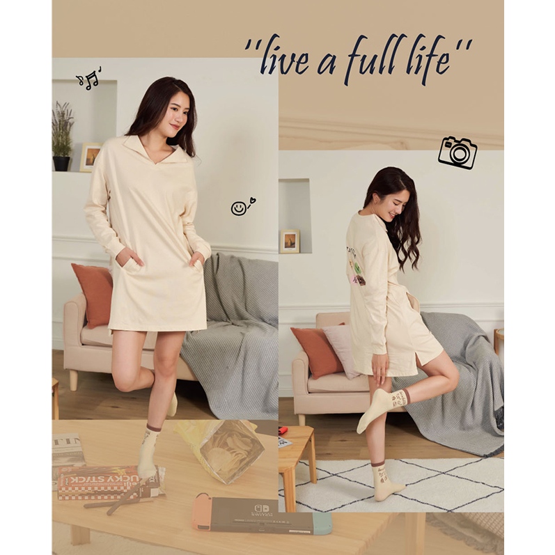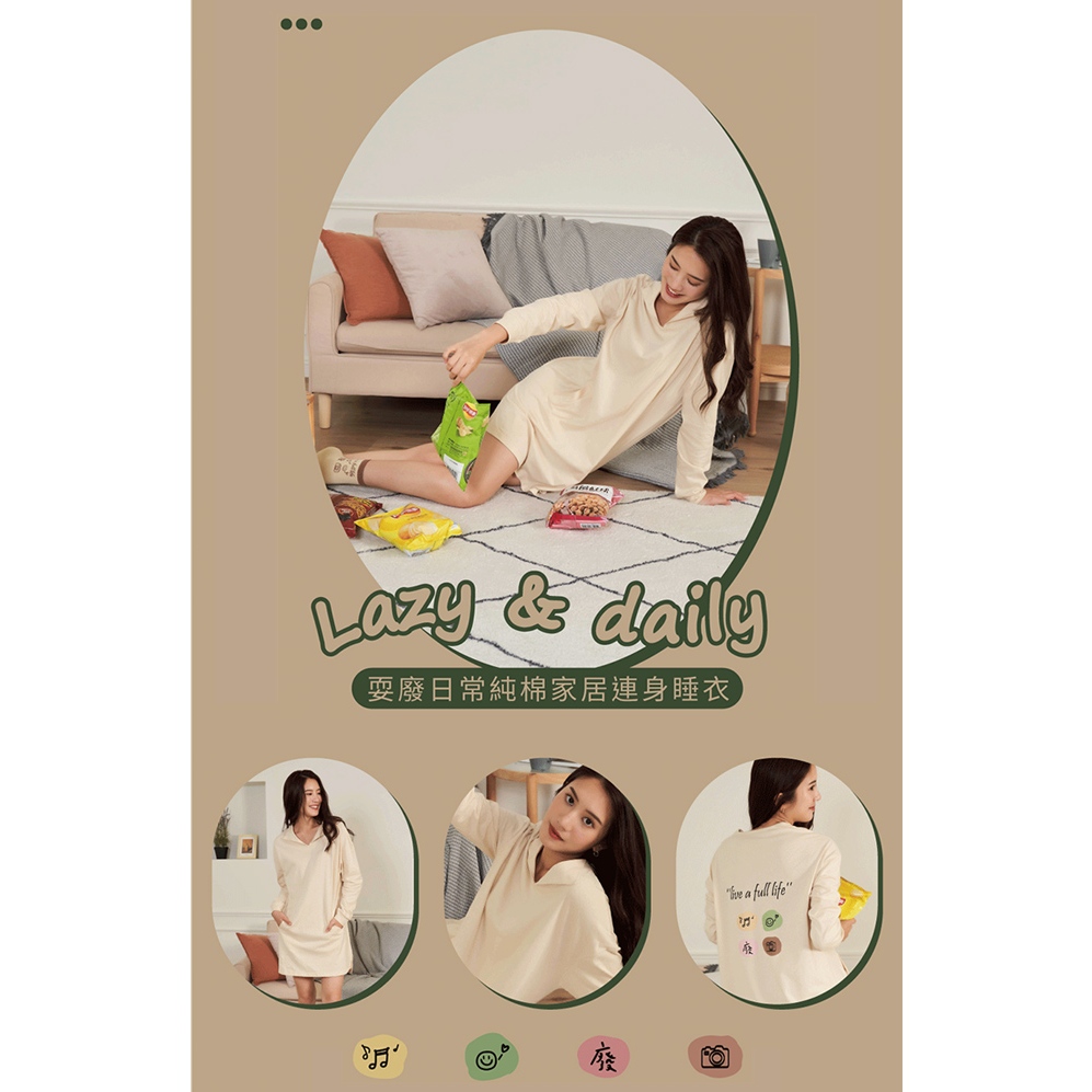 【EASY SHOP】Banana Pie-IN ECO-耍廢日常純棉家居連身睡衣(女)-淺黃M|L|LLNight DressesEASY SHOP官方直營