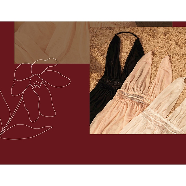【EASY SHOP】Miss Audrey-妖艷幻境-極深V透膚網紗美背性感睡衣-魅惑黑FNight DressesEASY SHOP官方直營