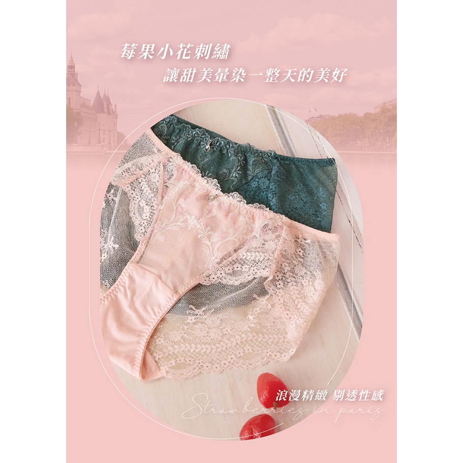 【EASY SHOP】Audrey-巴黎草莓 -平面無痕彈性蕾絲中腰內褲-戀愛粉M|L|LLPantiesEASY SHOP官方直營