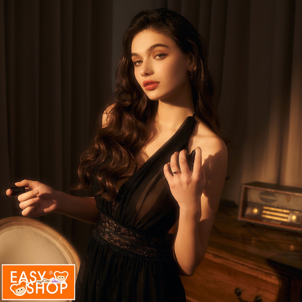 【EASY SHOP】Miss Audrey-妖艷幻境-極深V透膚網紗美背性感睡衣-魅惑黑