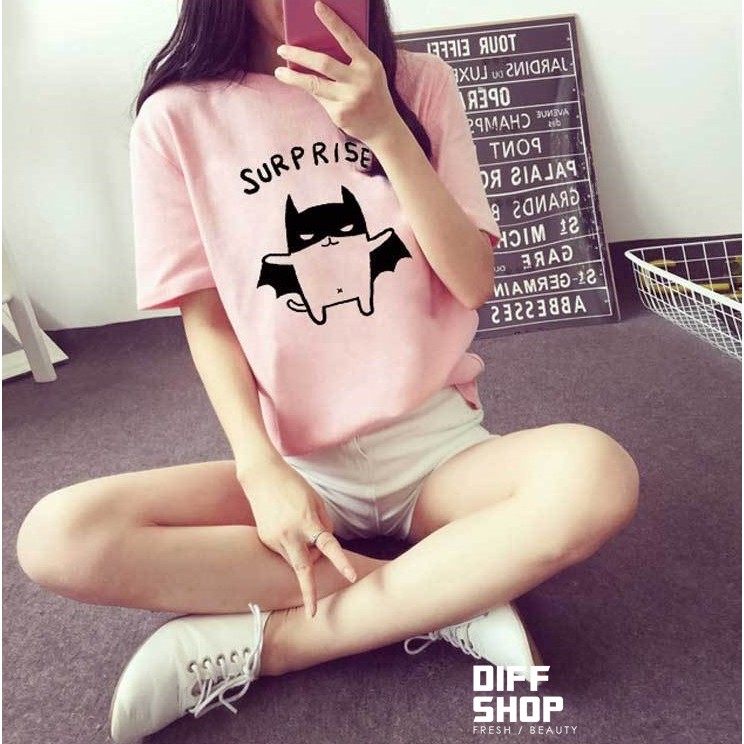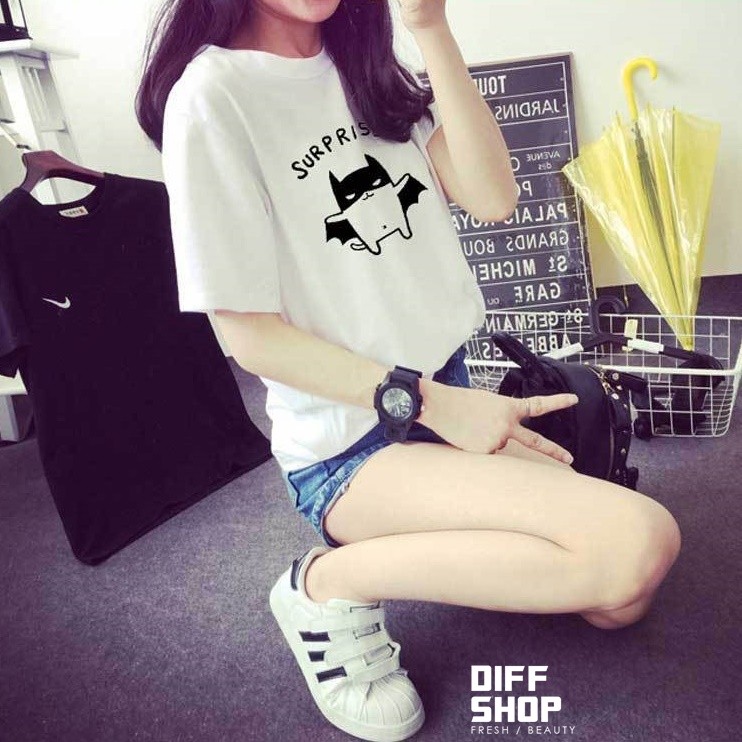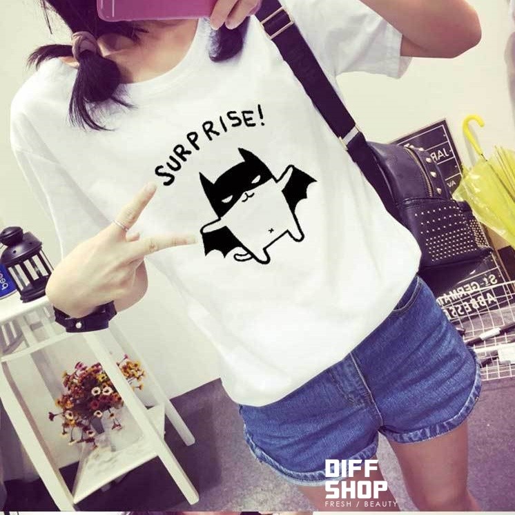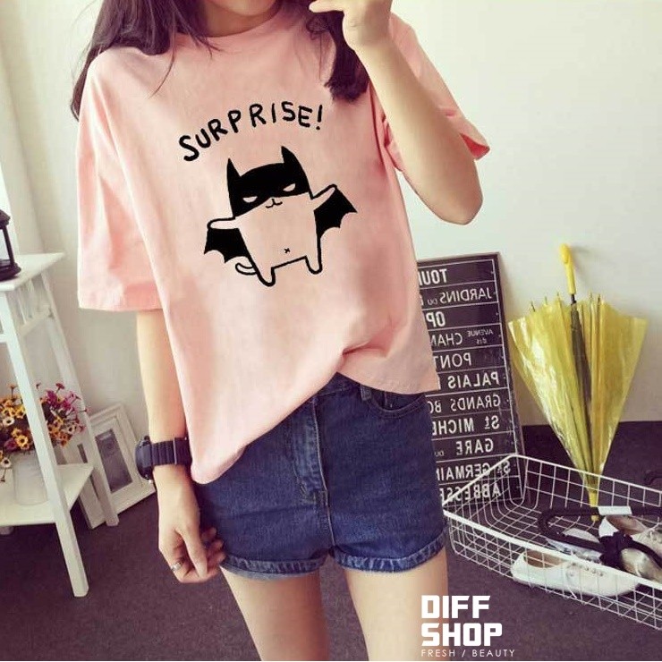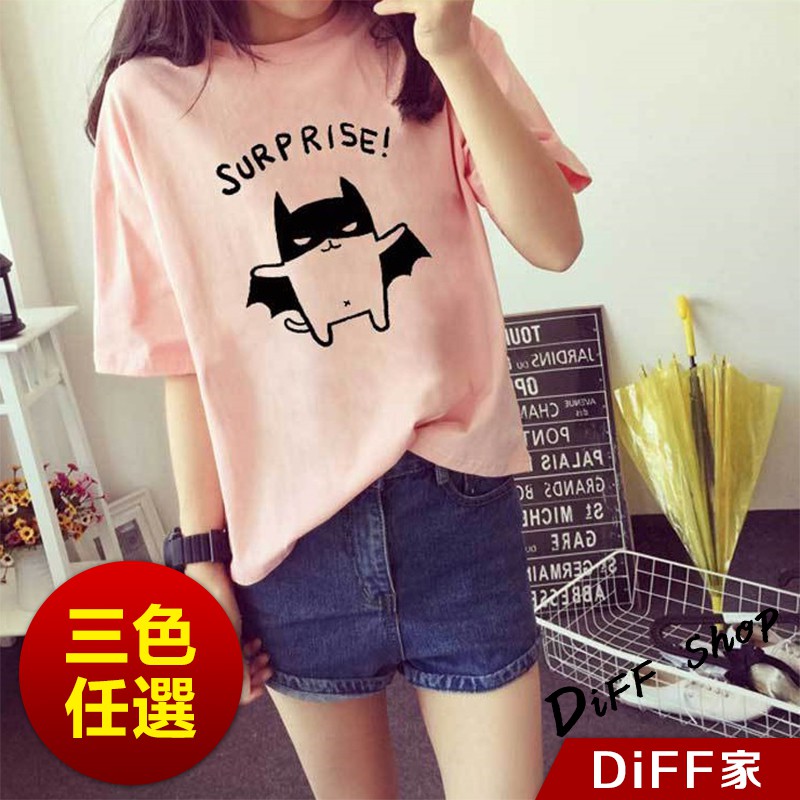 【DIFF】夏季新款韓版寬鬆圓領卡通蝙蝠短袖T恤 正韓風 韓妞 短袖上衣 素面 衣服 女裝【T89】【T89】白色|【T89】粉色|【T89】灰色T-shirtsDiFF shop