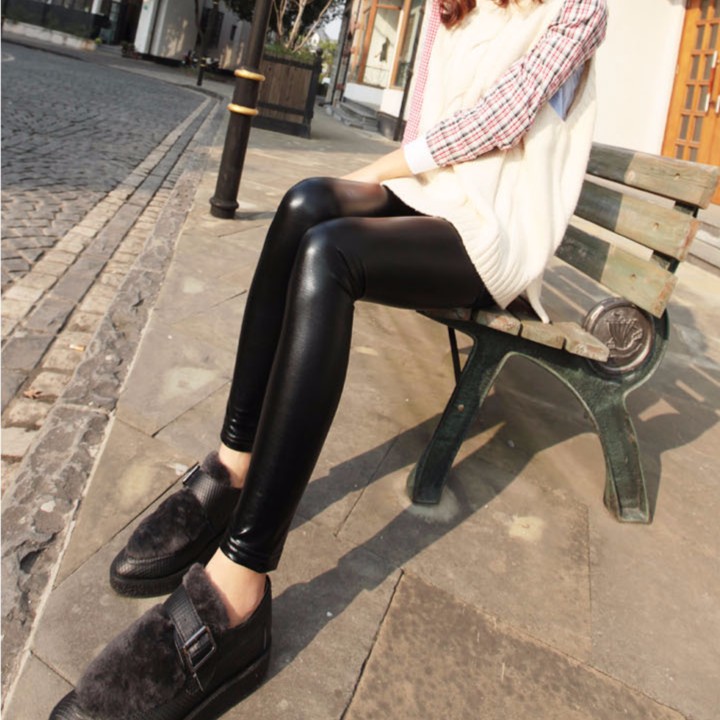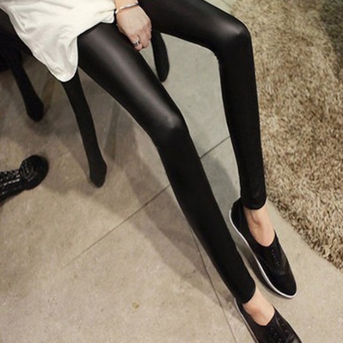 【DIFF】韓版顯瘦光澤薄款仿皮褲 緊身顯瘦 仿皮褲 內搭褲 光澤褲 褲子 長褲 休閒褲 女裝 高腰褲 黑褲【P45】【P45】黑Leggings & TreggingsDiFF shop