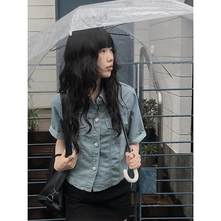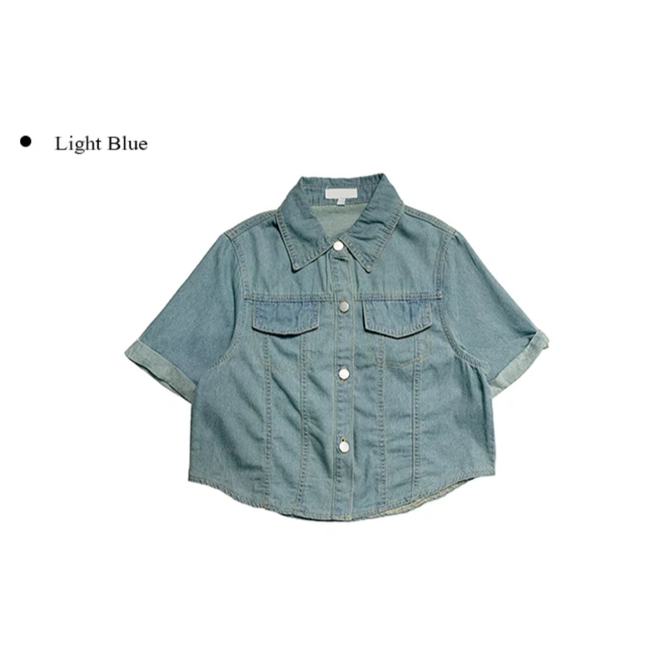 Codibook|韓國 anyonemore 天空短版牛仔短袖襯衫[預購]襯衫 女裝free,淺藍(天空藍)Shirts & BlousesCodibook 韓國女裝購物平台