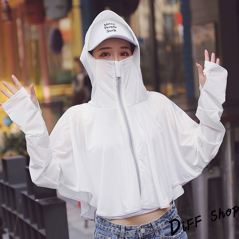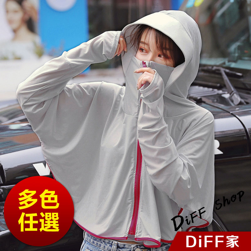 【DIFF】韓版冰絲涼感透氣寬鬆防曬外套 連帽外套 帽子 斗篷 上衣 女裝 衣服 長袖上衣 薄外套 罩衫【J284】【J284】灰色|【J284】粉色|【J284】淺綠|【J284】白色|【J284】淺藍CapesDiFF shop