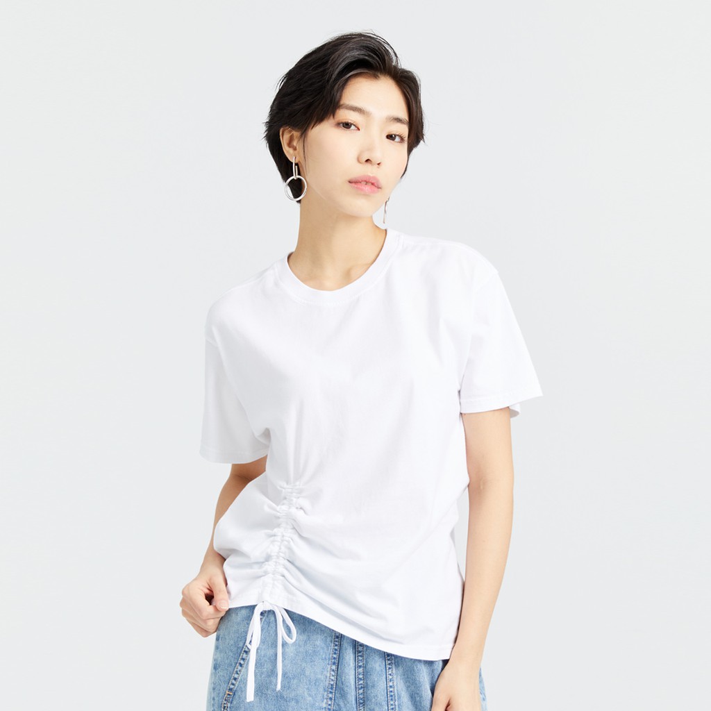【ERSS】女裝 短袖 女生 t恤 短袖上衣 抽繩造型修身舒適棉T 白色 -女【K70227】M|L|XL|ST-shirtsE.R.S.S.