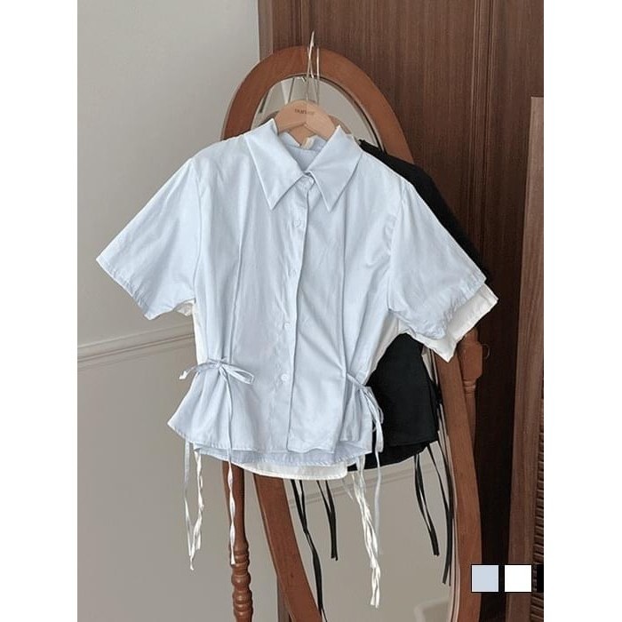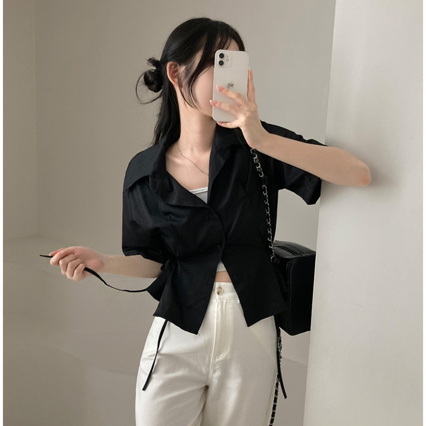 Codibook|韓國 gifteabox 領口綁結吊帶短袖襯衫[預購]襯衫 女裝天空藍,Free|象牙白,Free|黑色,FreeShirts & BlousesCodibook 韓國女裝購物平台
