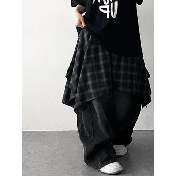 Codibook|韓國 HIJJOO 層次格紋褶襇半身裙[預購]裙子 女裝海軍藍|卡其色|灰色Codibook 韓國女裝購物平台