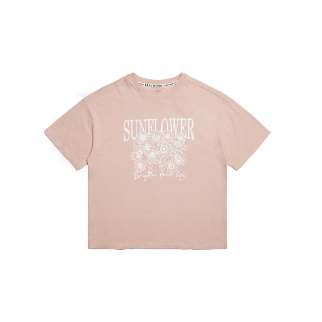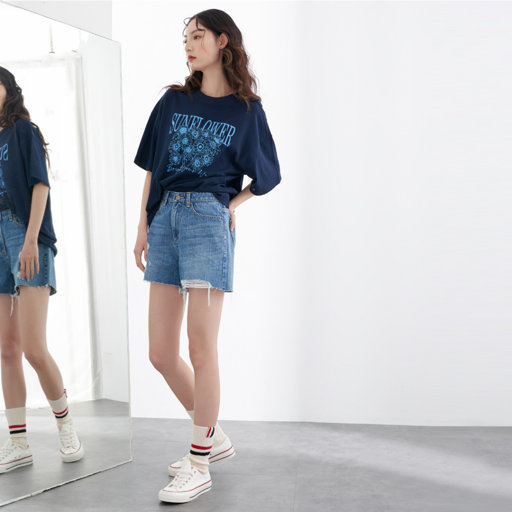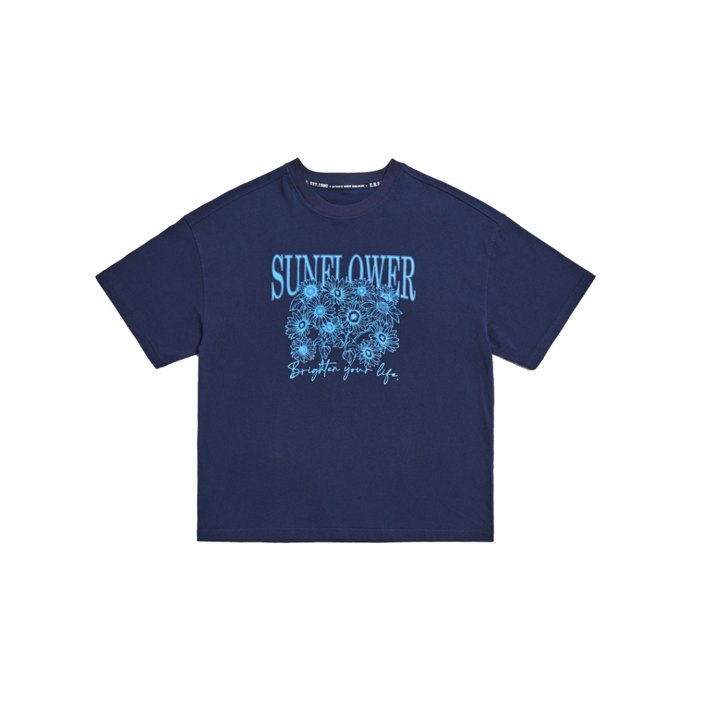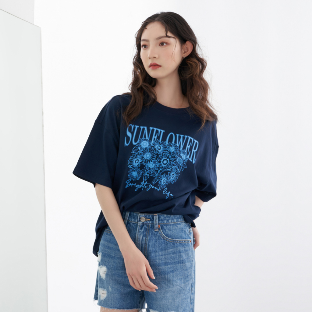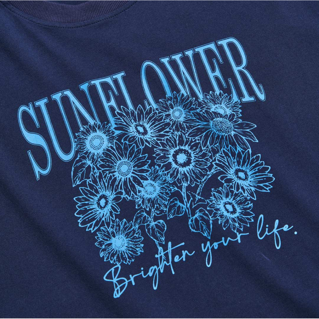 【ERSS】女裝 短袖 女生 t恤 短袖上衣 春日戀花向日葵印花TEE-女 丈青【K70319】
