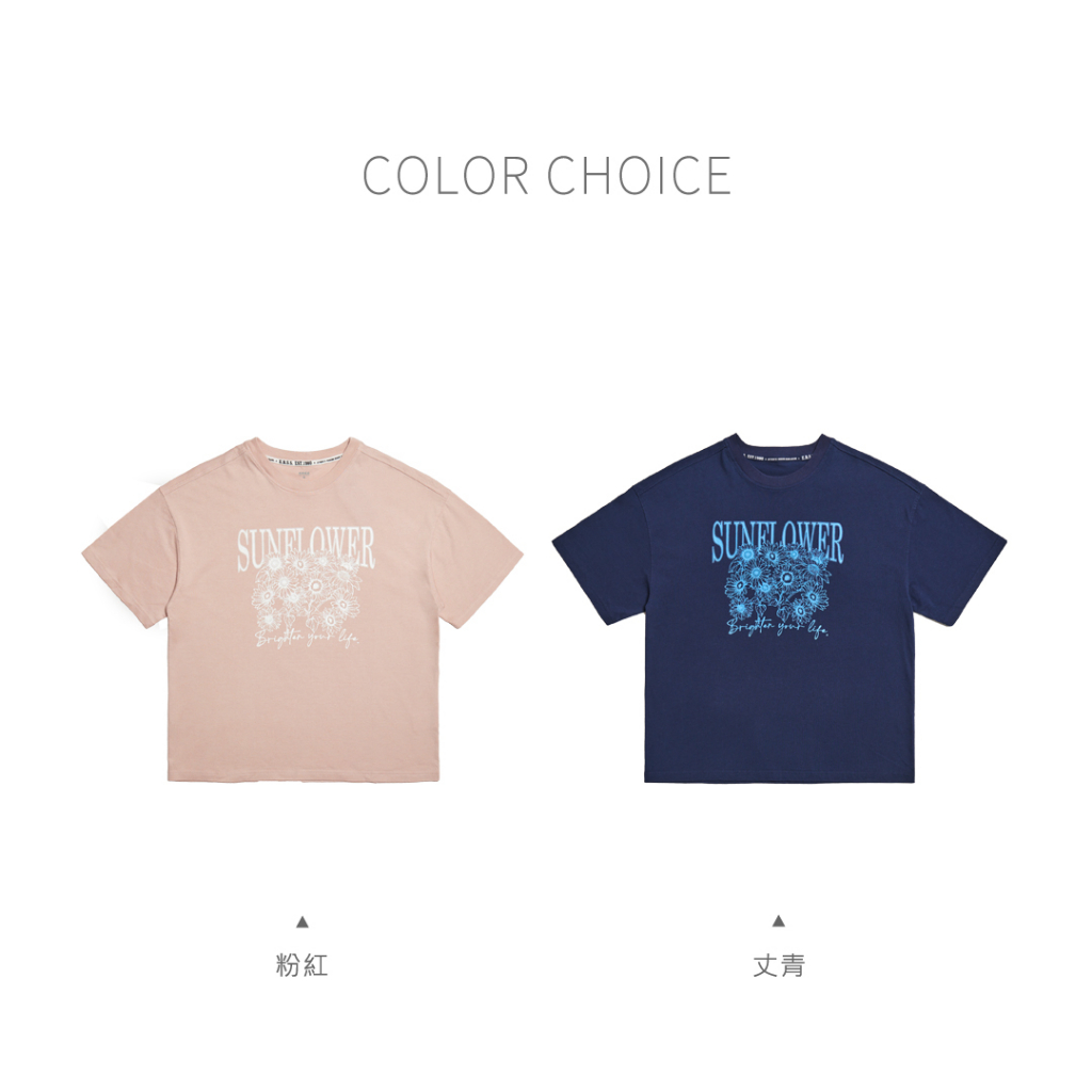 【ERSS】女裝 短袖 女生 t恤 短袖上衣 春日戀花向日葵印花TEE-女 丈青【K70319】M|L|XL|ST-shirtsE.R.S.S.