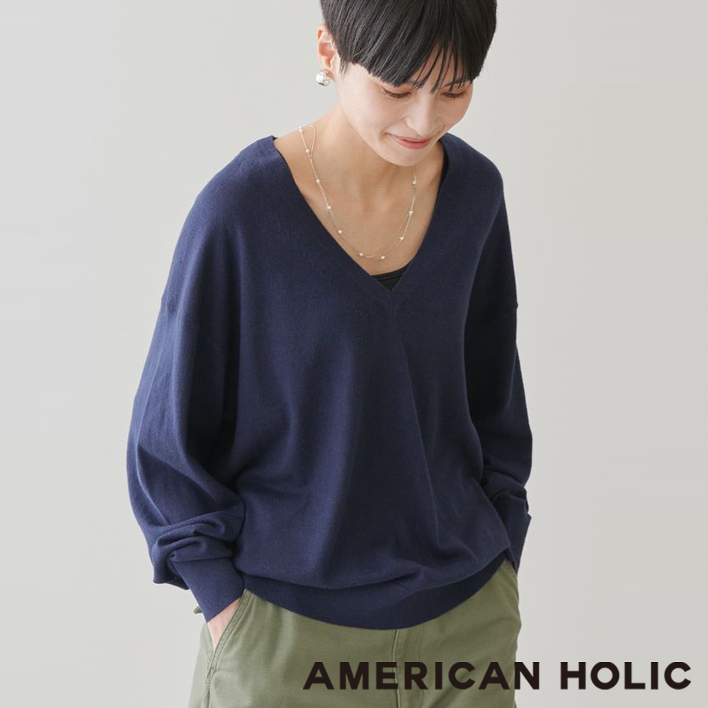 AMERICAN HOLIC 素面深V領口羅紋針織上衣(HC51L2C0100)淡混灰色M|粉紅色M|淡黃色M|深藍色M|淡混灰色L|粉紅色L|淡黃色L|深藍色Learth music&ecology Select Store