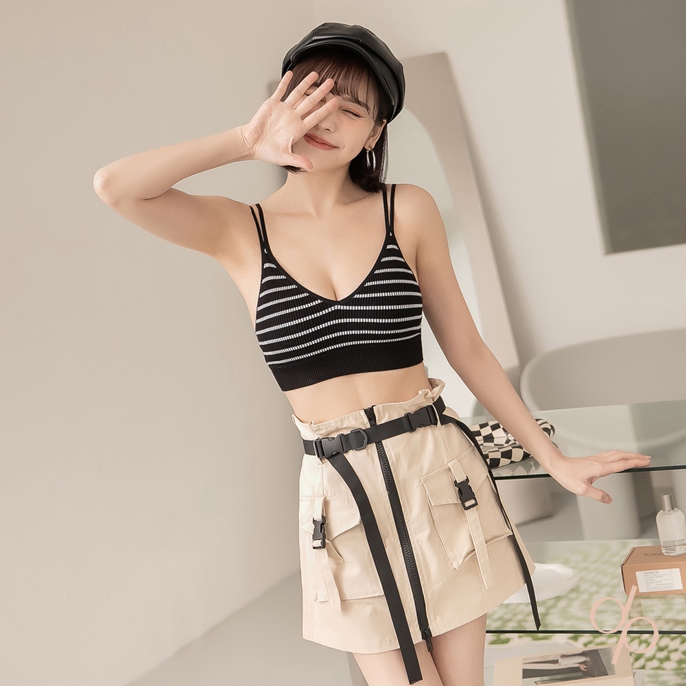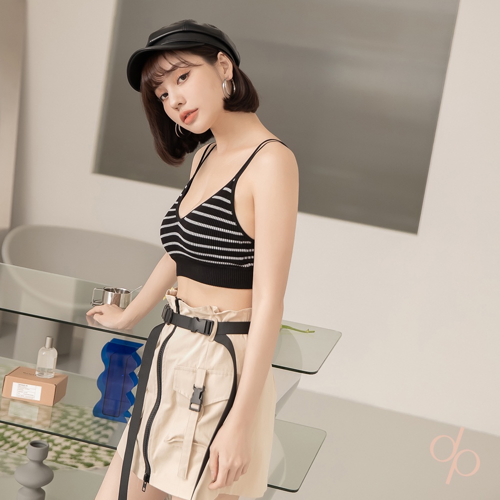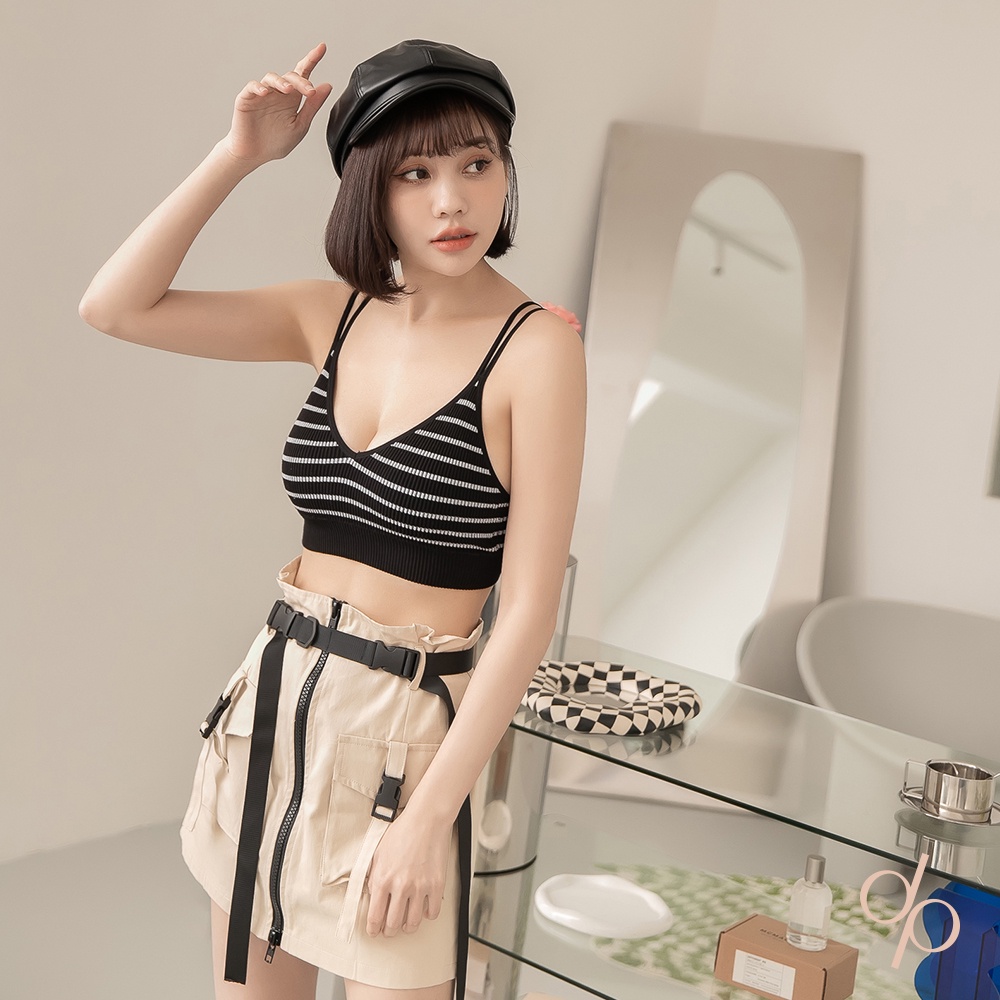 【DEPIC】V領螺紋雙肩帶固定式三角罩杯小可愛 (黑條紋)|dp select黑條紋BrasDEPIC
