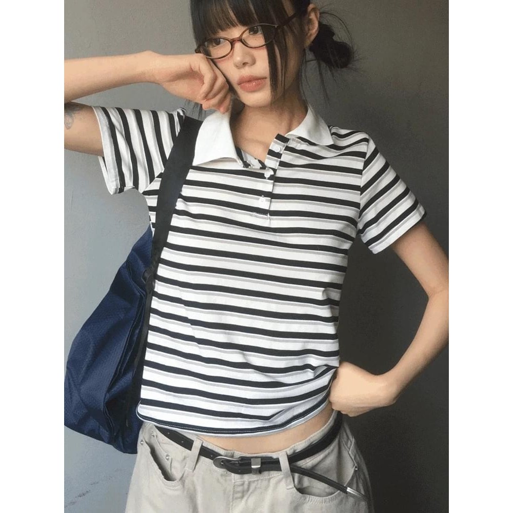 Codibook|韓國 wonderwonder 經典條紋PK領短袖polo衫[預購]短袖上衣 女裝綠藍,FREE|黑灰色,FREE|炭藍色,FREE|粉紅色,FREE|米白,FREET-shirtsCodibook 韓國女裝購物平台