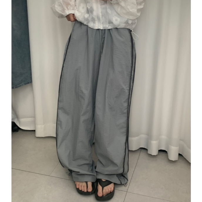 Codibook|韓國 EEZEE 尼龍線條鬆緊長褲PA029[預購]長褲 闊腿褲 女裝灰色,FREE|深灰色,FREEPantsCodibook 韓國女裝購物平台