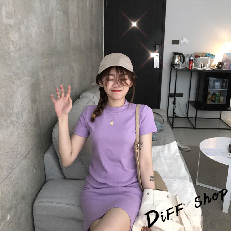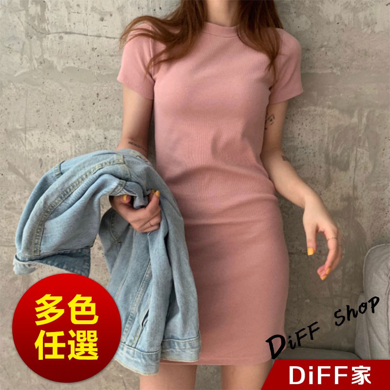 【DIFF】韓版素色彈性顯瘦長版短袖連衣裙 洋裝 下半身失蹤 短袖上衣 短袖t恤 女裝 顯瘦上衣 衣服 素T【T218】【T218】淺黃|【T218】粉色|【T218】淺紫|【T218】黑色|【T218】淡藍DiFF shop
