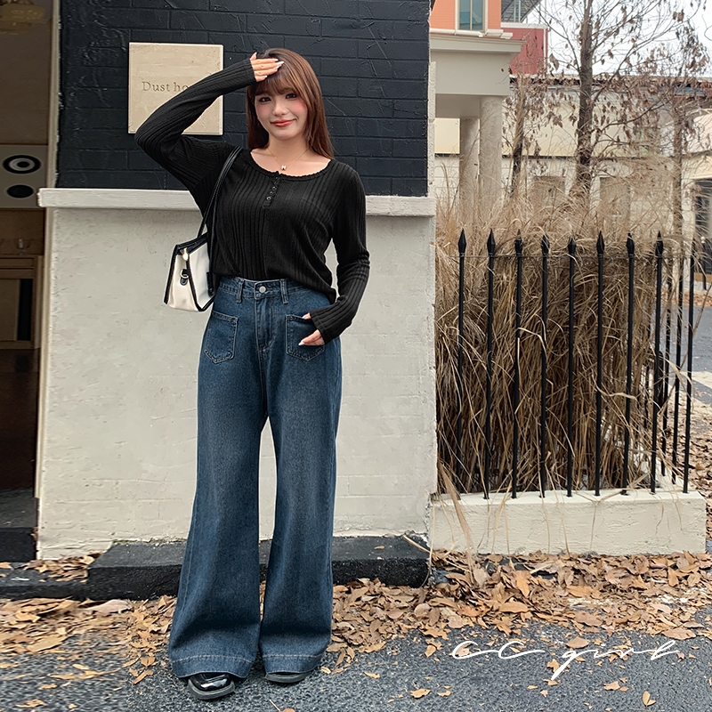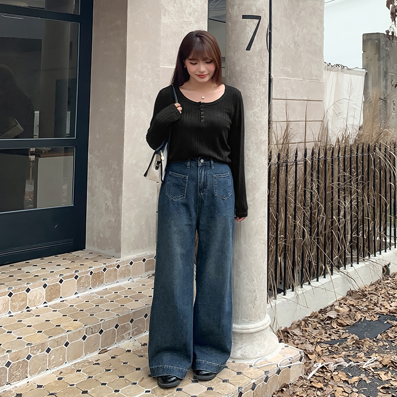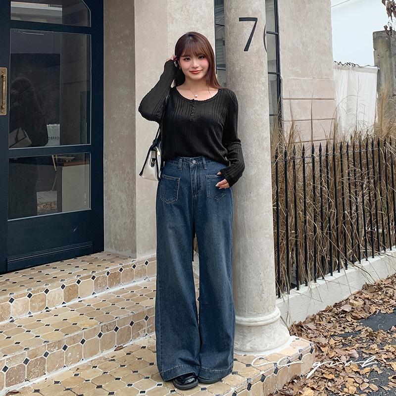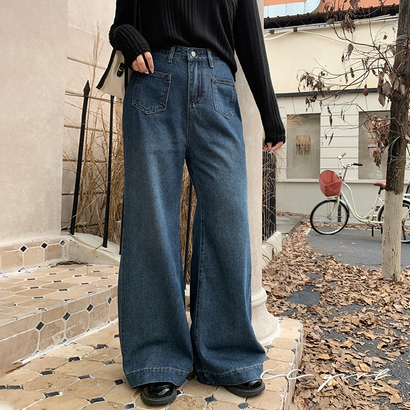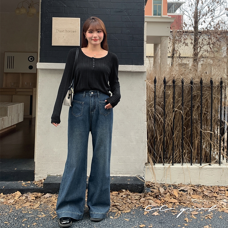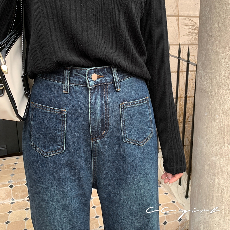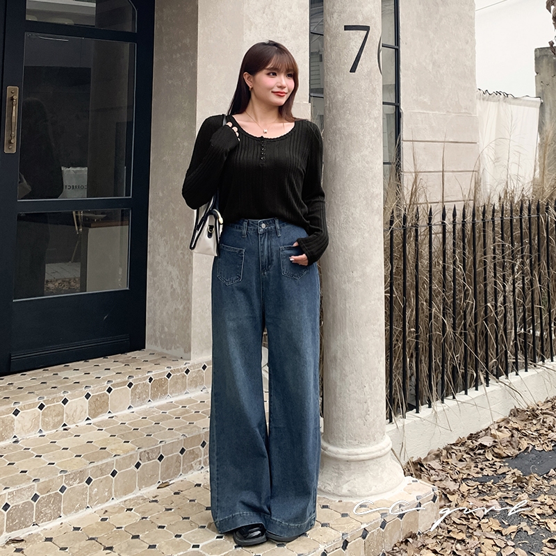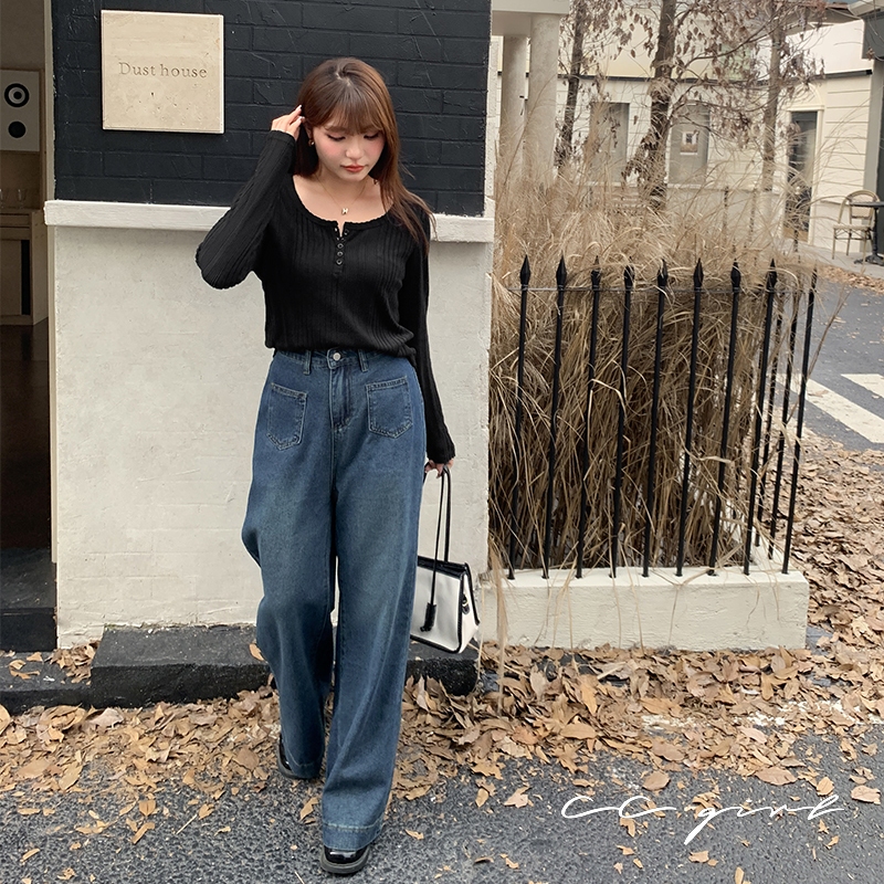 CCGIRL中大尺碼 甜酷雙口袋大長腿落地牛仔寬褲(無後鬆緊+真口袋)-適L~4L《20692》大尺碼女裝 中大尺碼長褲L|XL|2L|3L|4LCCGIRL中大尺碼女裝