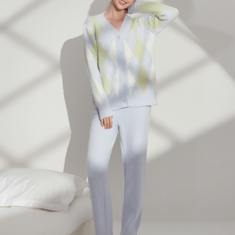 【EnamoR】小排扣開衫軟綿綿家居套裝 (上衣+褲子)【M&XL】/長袖 2件式 套裝 家居服 睡衣 大尺碼女裝粉藍棉花糖,M【預購】|粉藍棉花糖,XL【預購】PajamasEnamoR恩娜茉兒-官方旗艦店