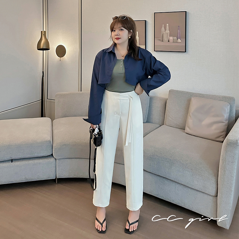 CCGIRL中大尺碼 前壓線繫帶造型裝飾九分褲(後鬆緊)-共2色-適L~5L《 31769 》大尺碼女裝 中大尺碼長褲九分褲-經典黑,3L|九分褲-經典黑,4L|九分褲-經典黑,5L|九分褲-氣質杏白,2L|九分褲-經典黑,L|九分褲-經典黑,XL|九分褲-經典黑,2L|九分褲-氣質杏白,L|九分褲-氣質杏白,XL|九分褲-氣質杏白,3L|九分褲-氣質杏白,4L|九分褲-氣質杏白,5LPantsCCGIRL中大尺碼女裝
