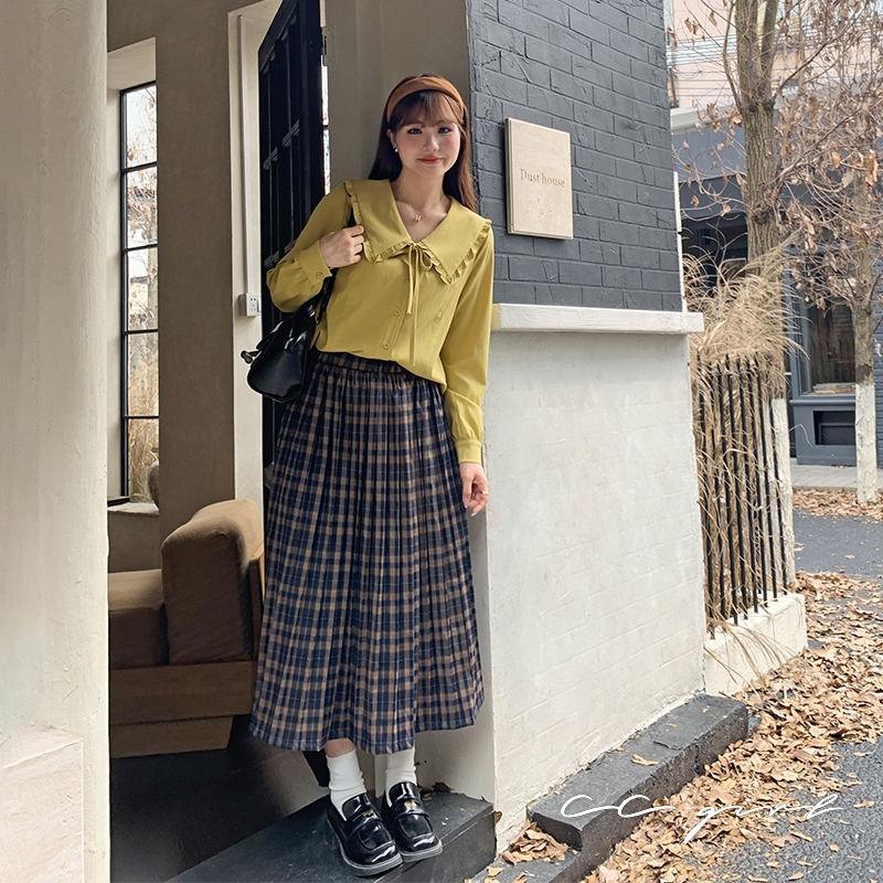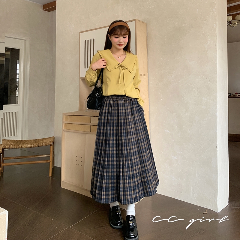 CCGIRL中大尺碼 浪漫傘擺飄逸細百褶復古格紋長裙(全鬆緊+有口袋)- 適L~5L《32110》大尺碼女裝中大尺碼長裙復古格紋長裙 – L|復古格紋長裙 – XL|復古格紋長裙 – 2L|復古格紋長裙 – 3L|復古格紋長裙 – 4L|復古格紋長裙 – 5LCCGIRL中大尺碼女裝