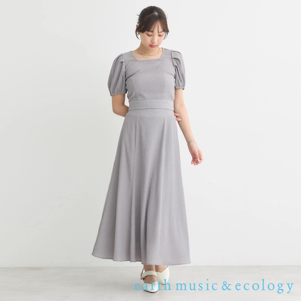 earth music&ecology 【SET ITEM】後蝴蝶結短版方領上衣+喇叭剪裁長裙(1M43L1H0130)灰色F|黑色F|淡青色FIndividual Setsearth music&ecology Select Store