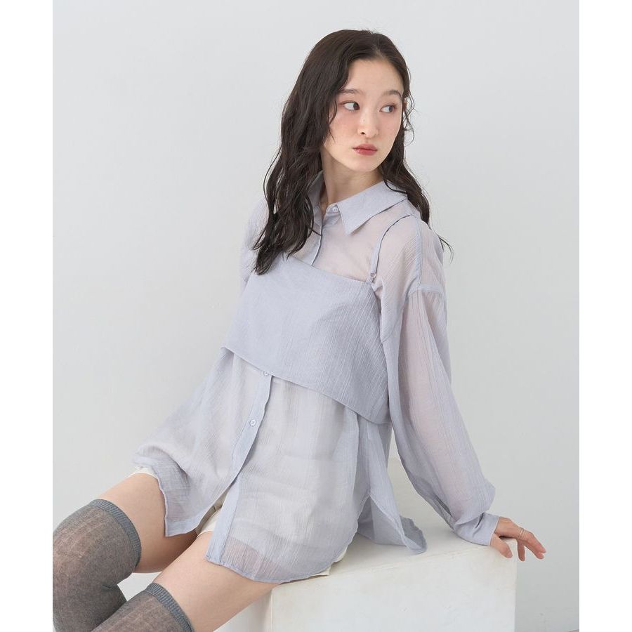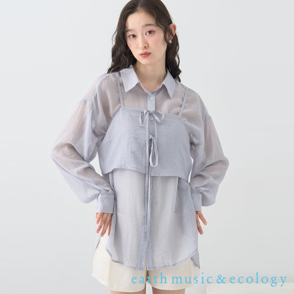 earth music&ecology 【SET ITEM】透膚長袖襯衫+前後穿綁結背心(01000688500)棕色F|淡褐色F|灰藍色FShirts & Blousesearth music&ecology Select Store