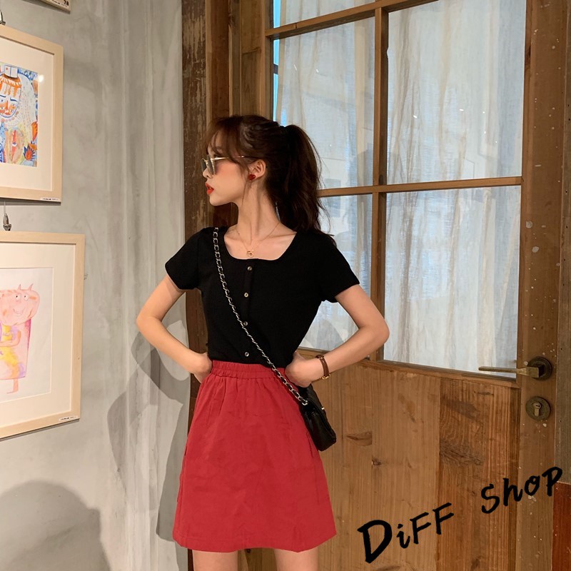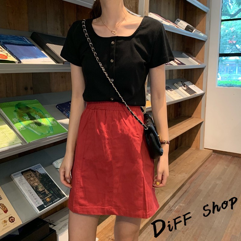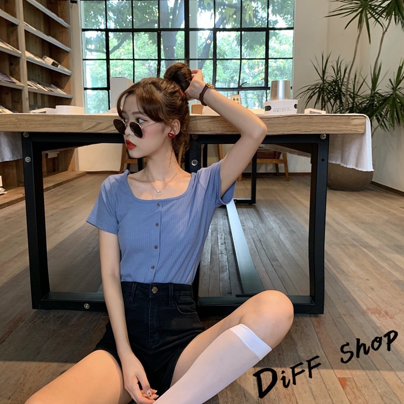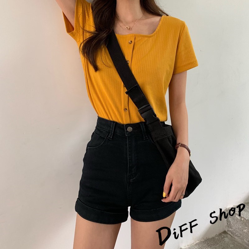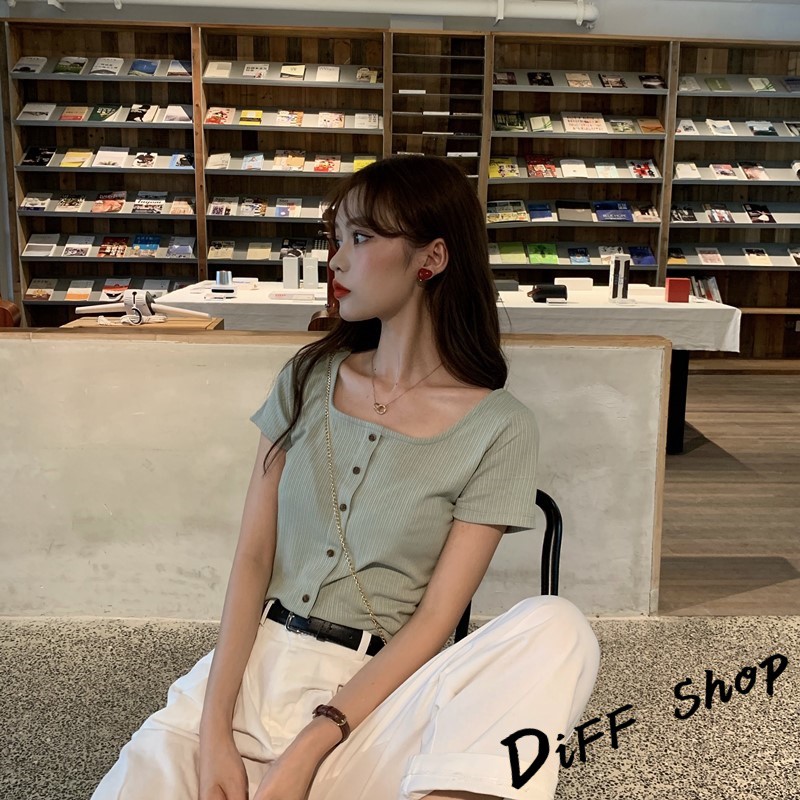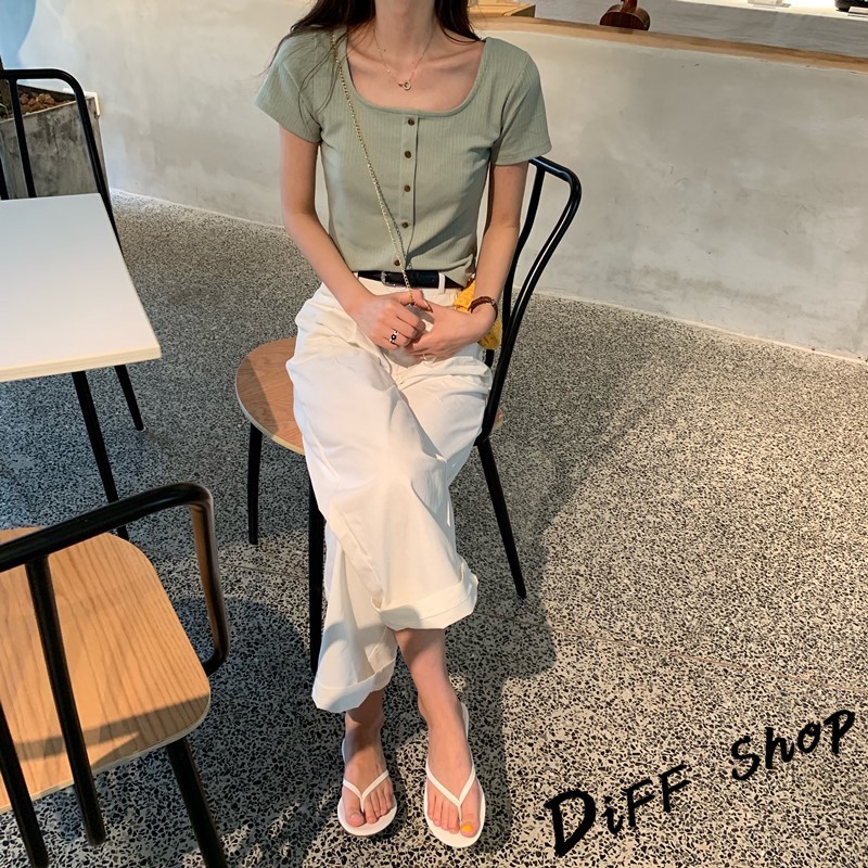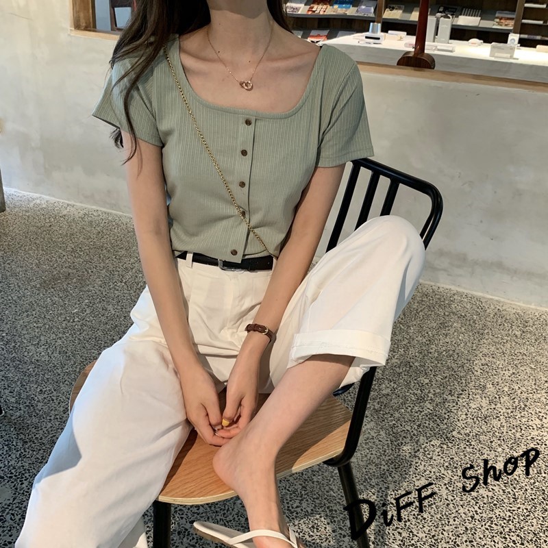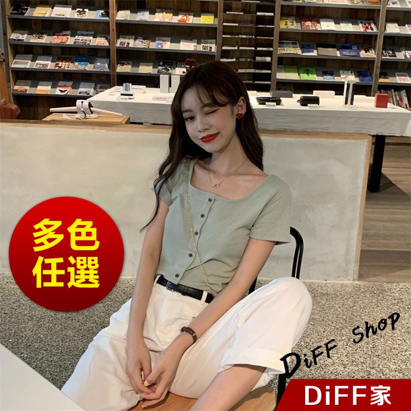 【DIFF】韓版百搭圓領露鎖骨短版針織上衣 短袖上衣 短袖t恤 女裝 顯瘦上衣 衣服 寬鬆上衣 素T【T261】【T261】淺綠|【T261】黑色T-shirtsDiFF shop