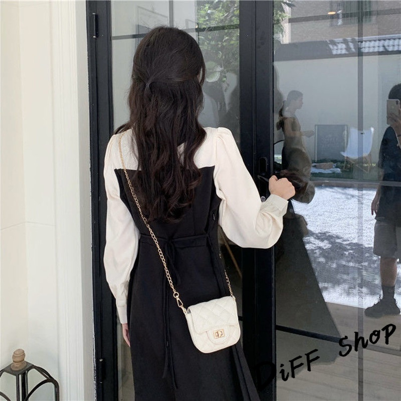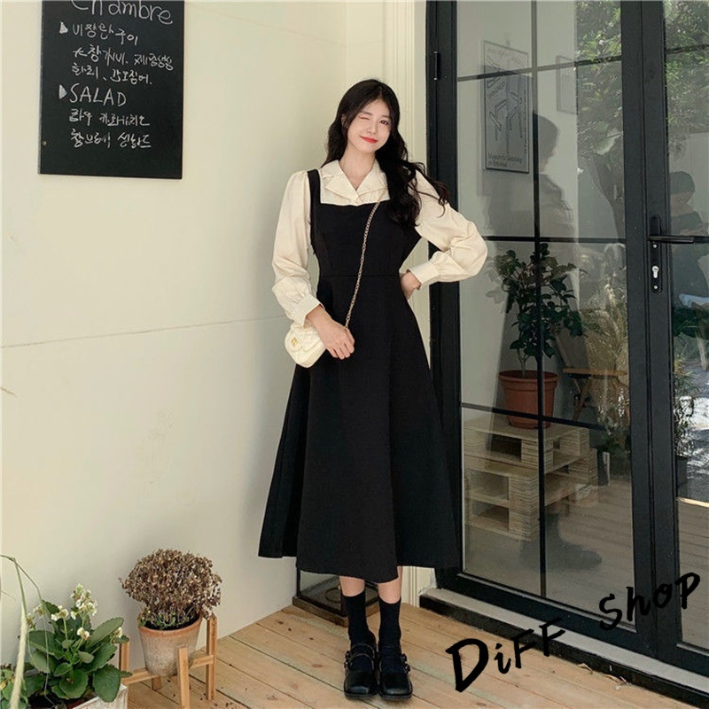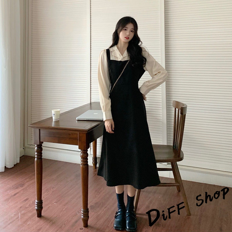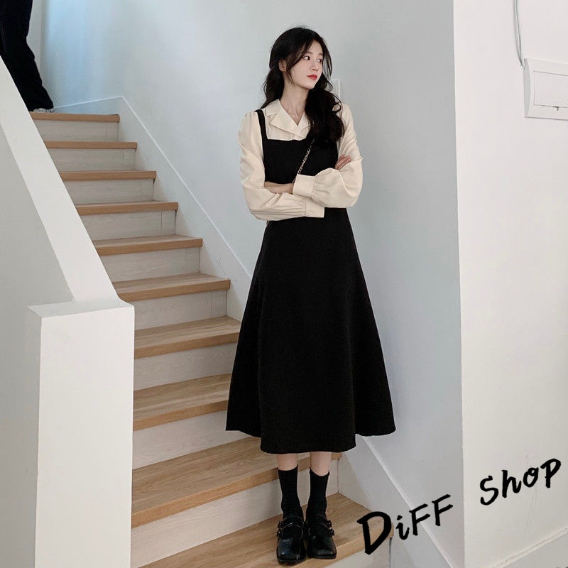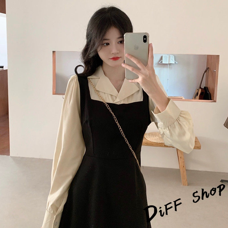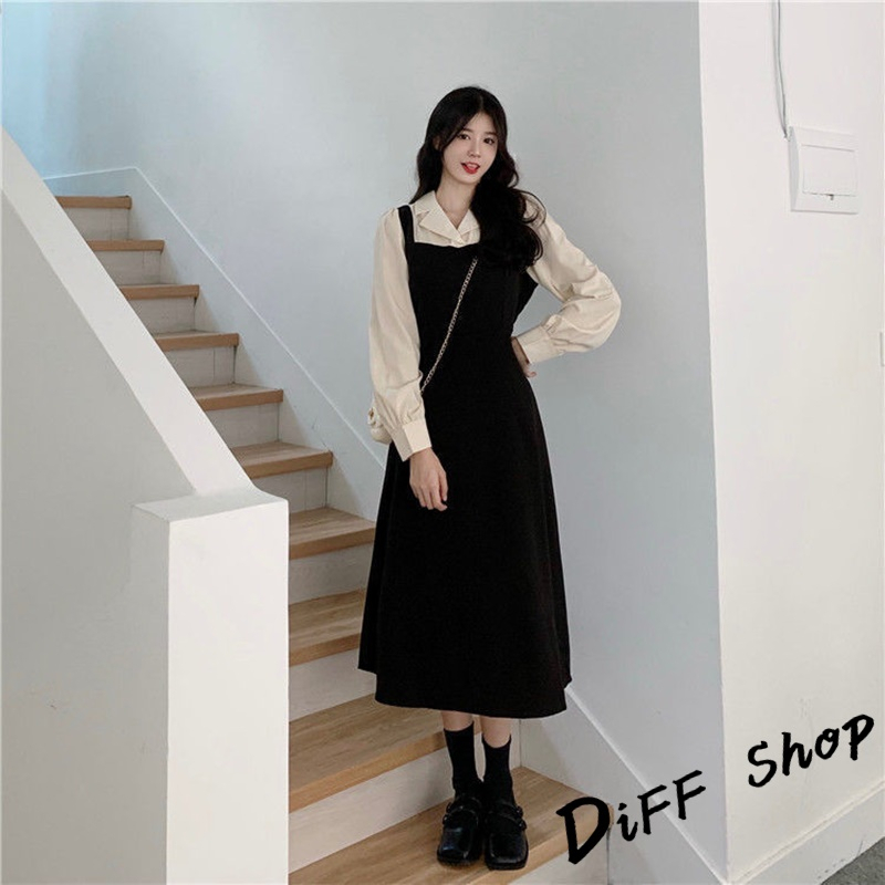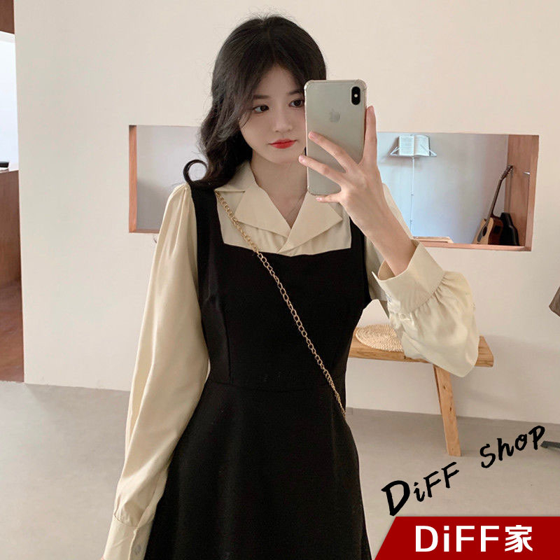 【DIFF】韓版氣質假兩件簡約小眾長袖連衣裙 裙子 長裙 連身裙 洋裝 長袖上衣 女裝 衣服 女裝【S247】【S247】黑色DiFF shop