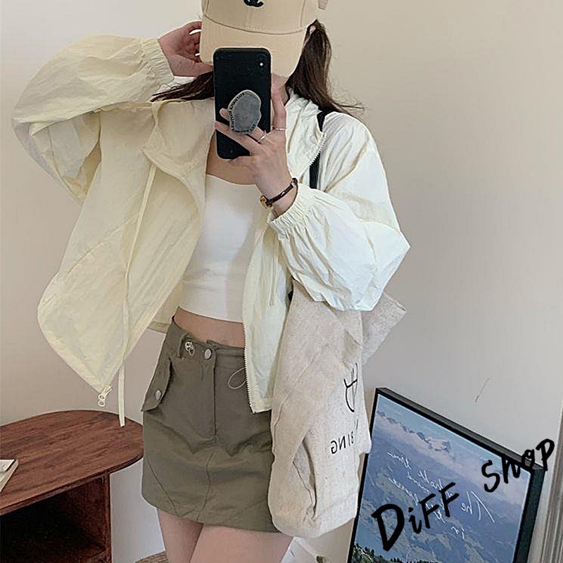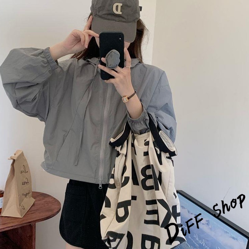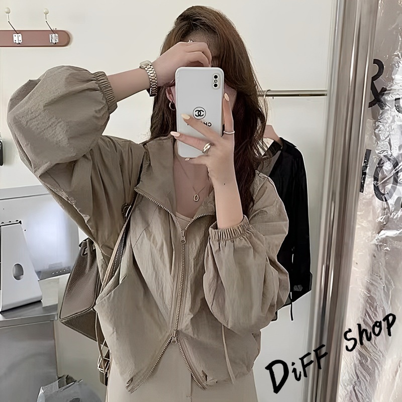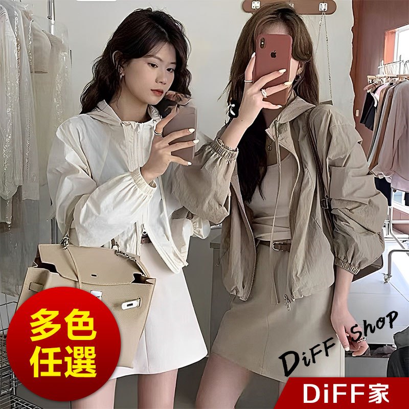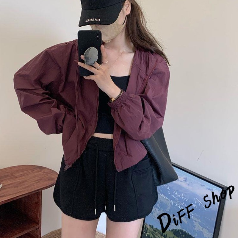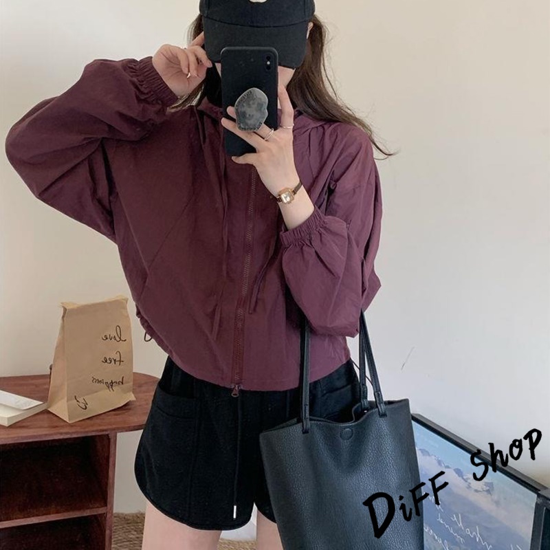 【DIFF】韓版薄款高級感薄外套 薄外套 連帽外套 風衣 防曬外套 女裝 衣服 長袖上衣 短版上衣 短版外套【J388】【J388】酒紅色|【J388】灰色|【J388】深卡其|【J388】淺紫色|【J388】白杏色|【J388】黑色JacketsDiFF shop