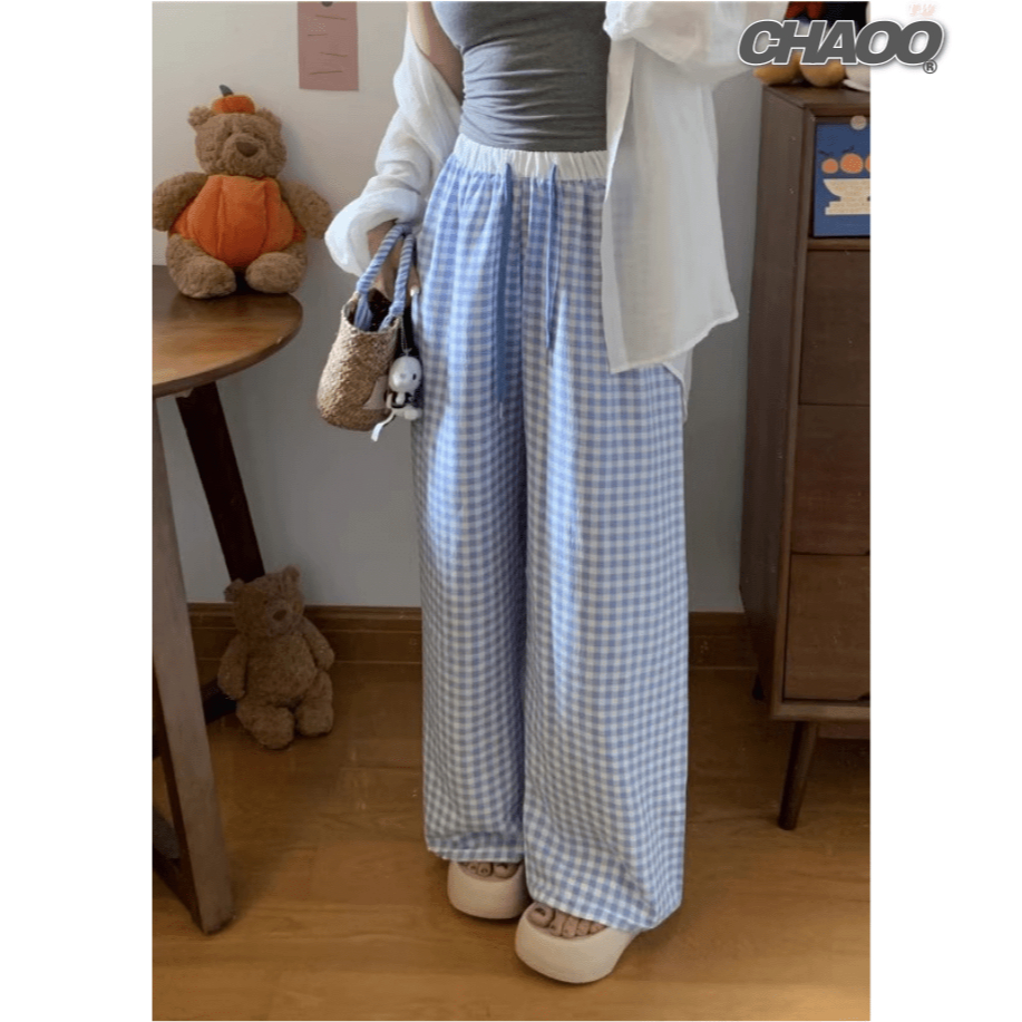 嘎嘎顯瘦! 長褲 女生寬褲 涼感褲女 淺藍格子 垂墜感長褲 休閒闊腿褲 九分褲 高腰寬褲 梨形友善 小個子穿搭 女生褲子淺藍格,S|淺藍格,M|淺藍格,L|淺藍格,XL|淺藍格【優質版】,S|淺藍格【優質版】,M|淺藍格【優質版】,L|淺藍格【優質版】,XL|深藍格,S|深藍格,M|深藍格,L|深藍格,XL|深藍格【優質版】,S|深藍格【優質版】,M|深藍格【優質版】,L|深藍格【優質版】,XLPantsCHAOO 台北原創服飾品牌