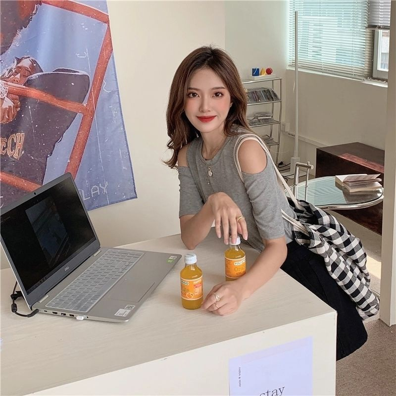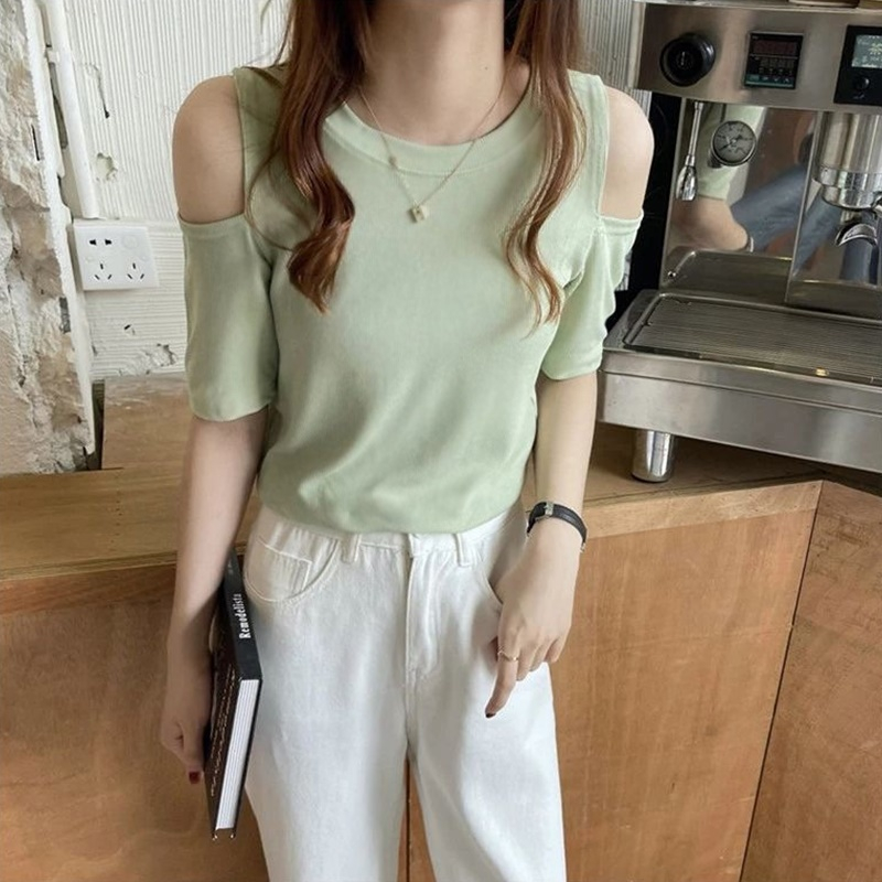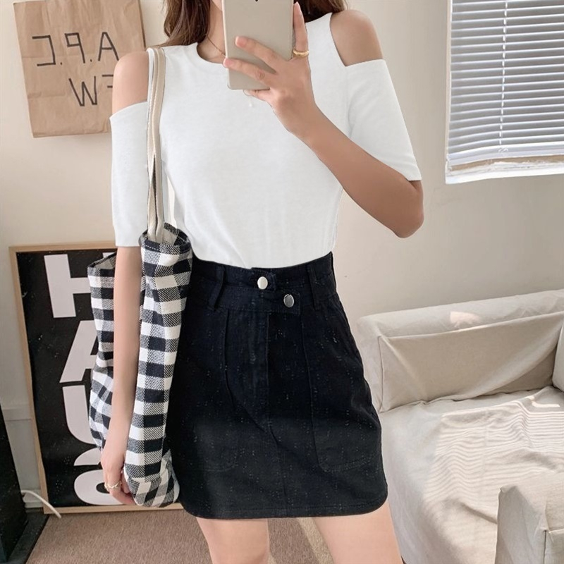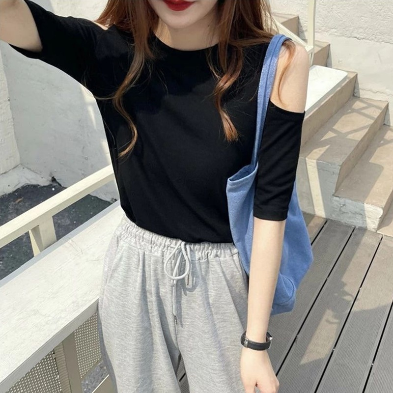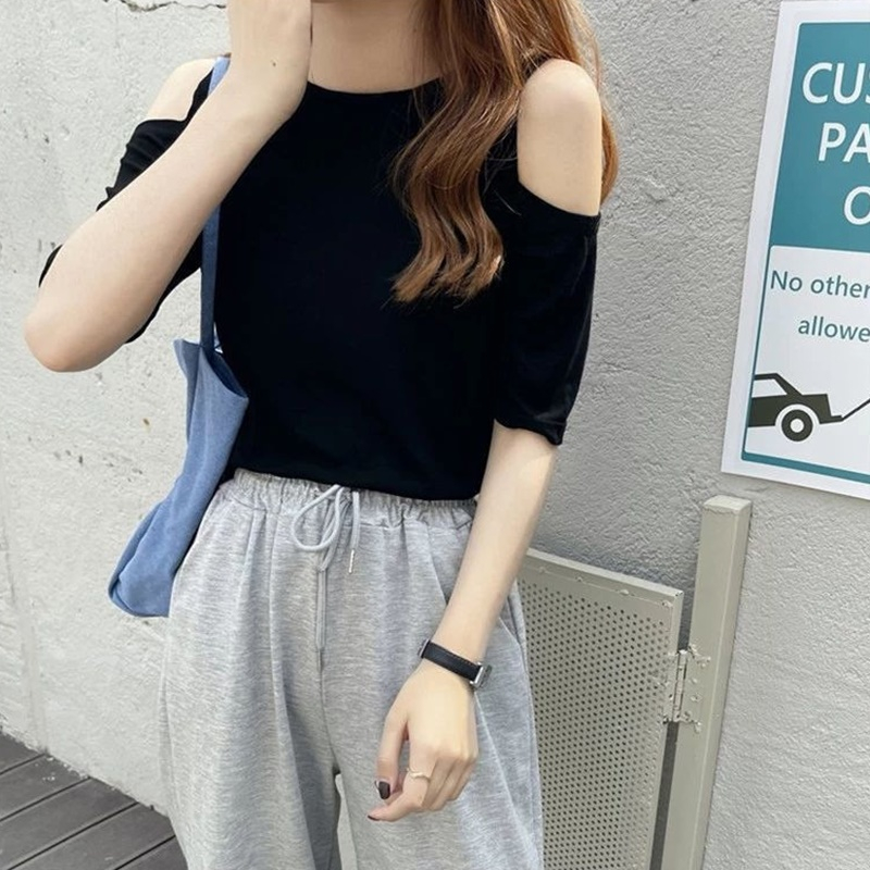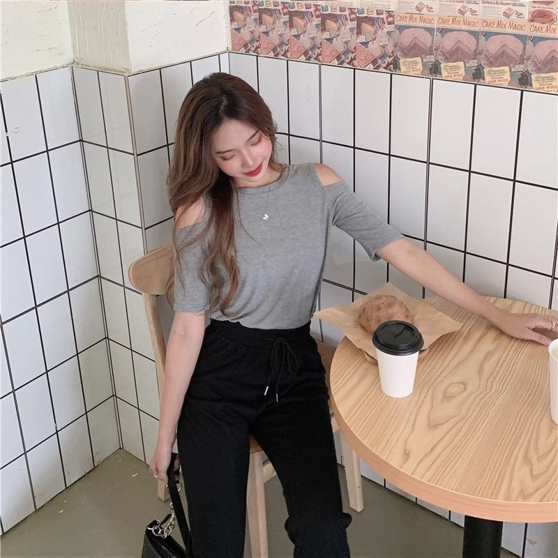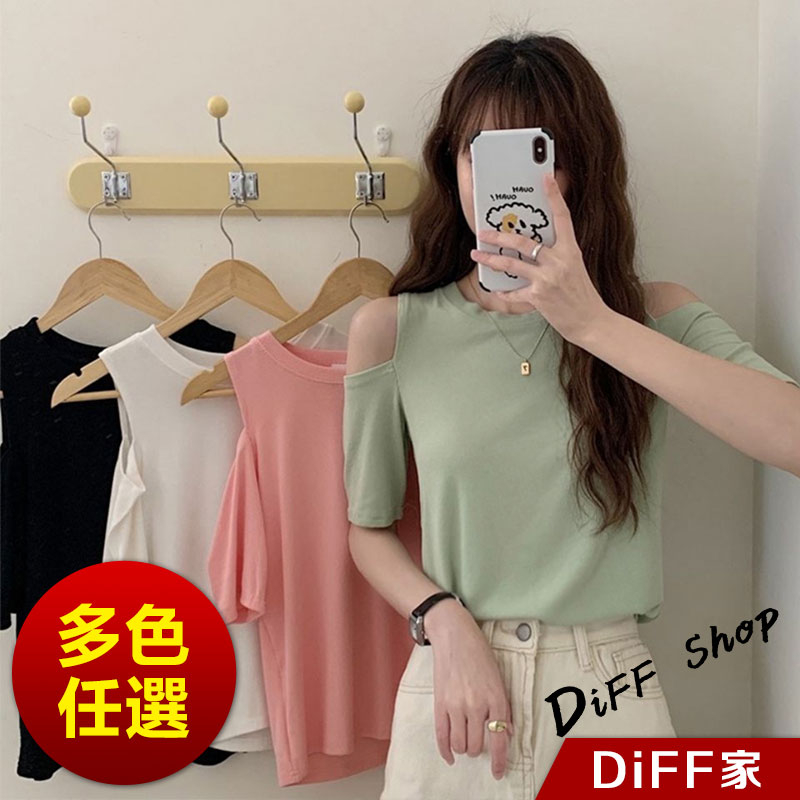 【DIFF】韓版露肩顯瘦短袖上衣 短袖t恤 女裝 顯瘦上衣 衣服 寬鬆上衣 素T【T580】【T580】黑色|【T580】粉色|【T580】白色T-shirtsDiFF shop