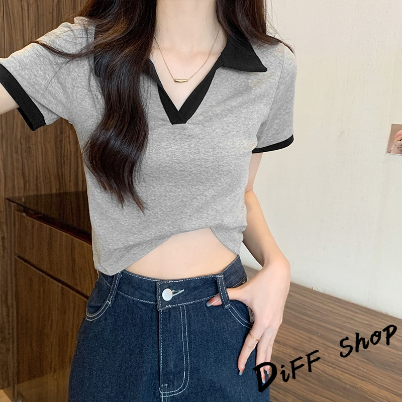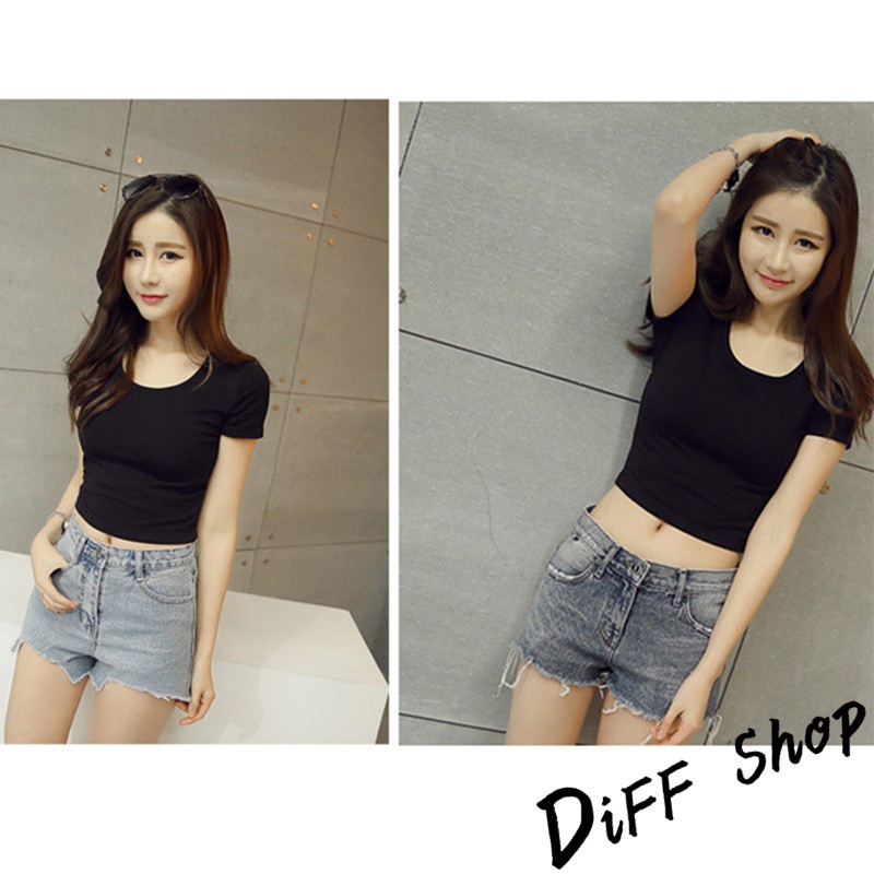 【DIFF】春夏韓版緊身性感露肚短版上衣 短袖T恤 短袖上衣 衣服 女裝 女裝【T110】【T110】黑色|【T110】灰色|【T110】白色T-shirtsDiFF shop