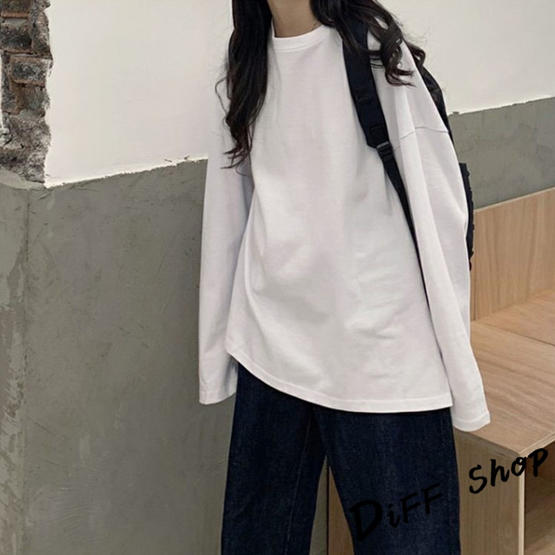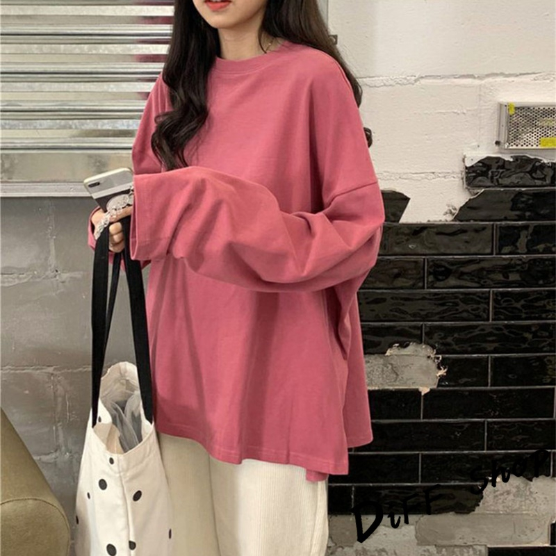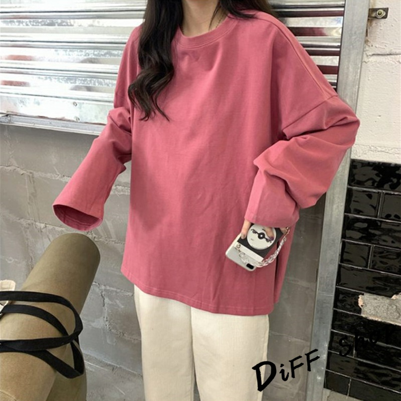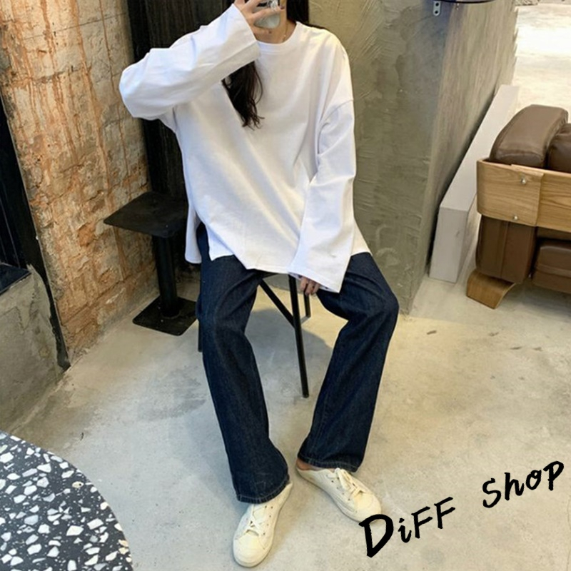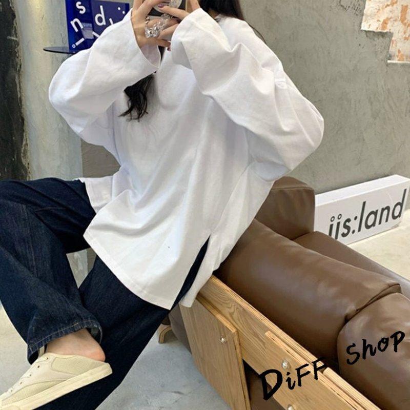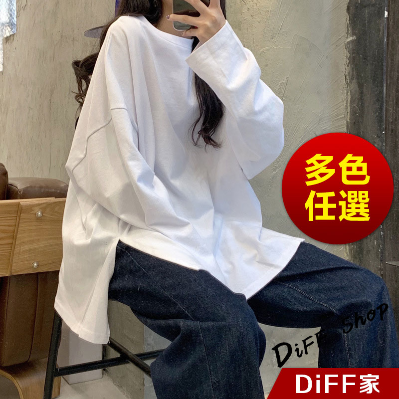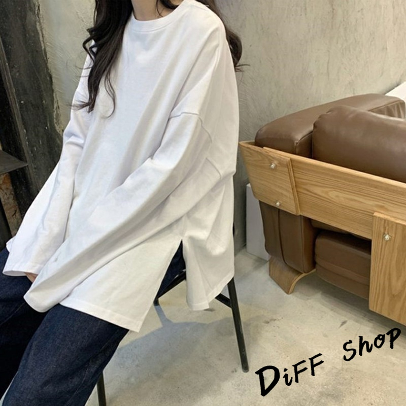 【DIFF】韓版開叉素色寬鬆長袖上衣 女裝 衣服 寬鬆上衣 顯瘦上衣 長袖t恤 冬裝 素T【W185】【W185】白色|【W185】咖啡|【W185】藍色|【W185】粉色|【W185】黑色T-shirtsDiFF shop