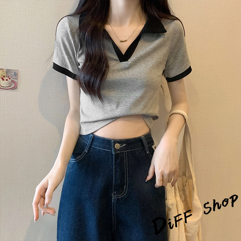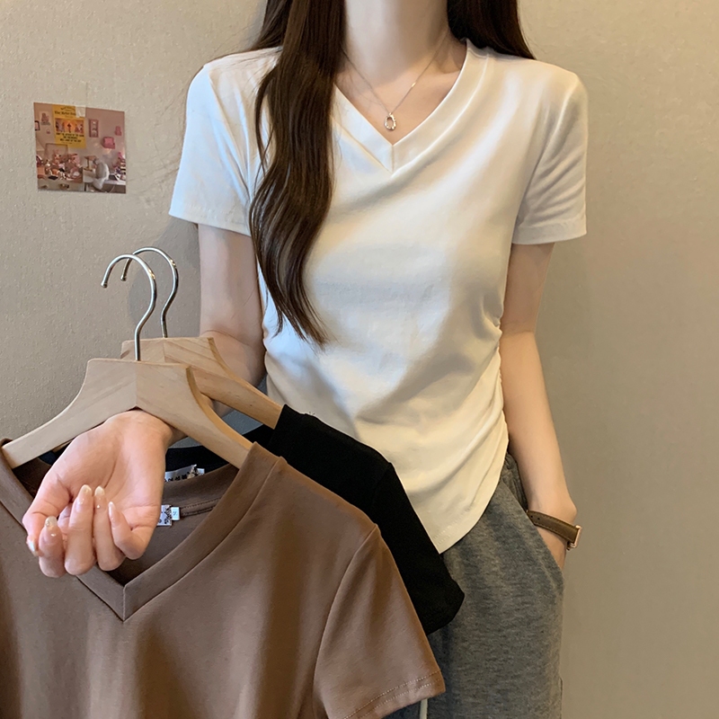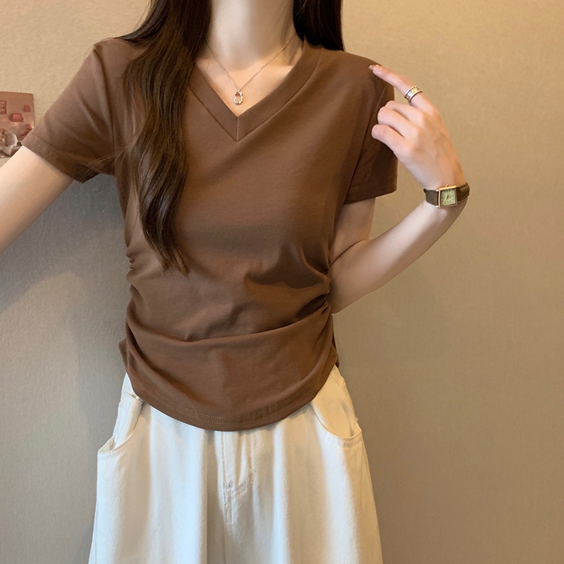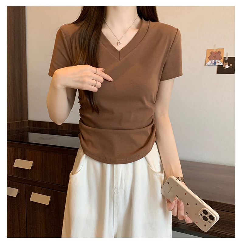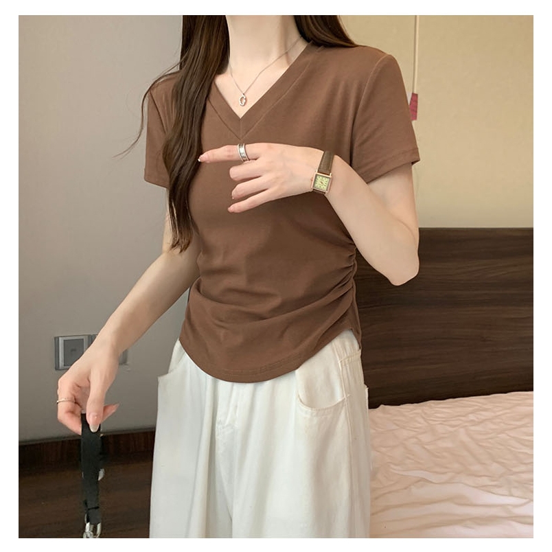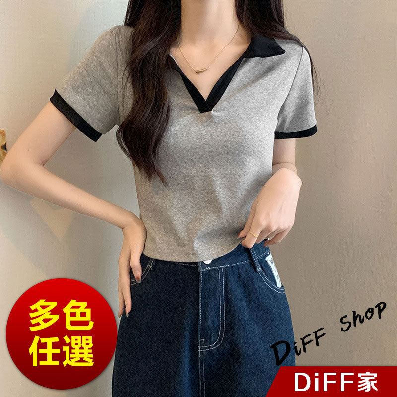 【DIFF】韓版設計感V領顯瘦小眾短袖上衣 短袖t恤 女裝 顯瘦上衣 衣服 寬鬆上衣 素T【T449】【T449】咖啡|【T449】灰色T-shirtsDiFF shop