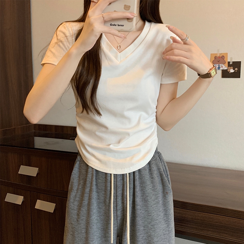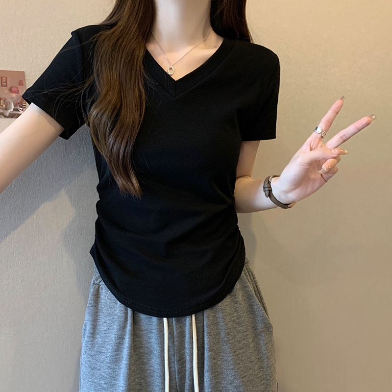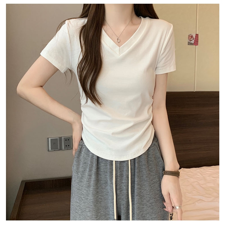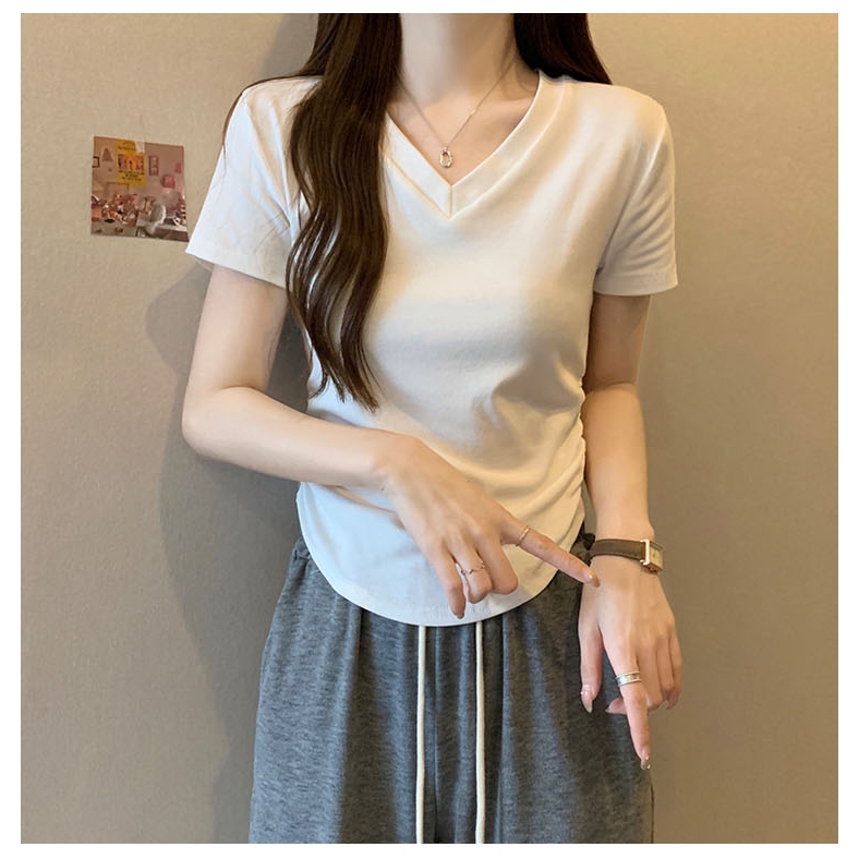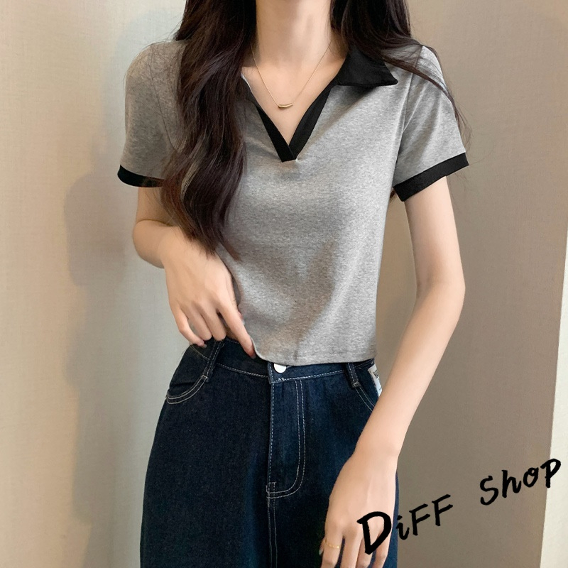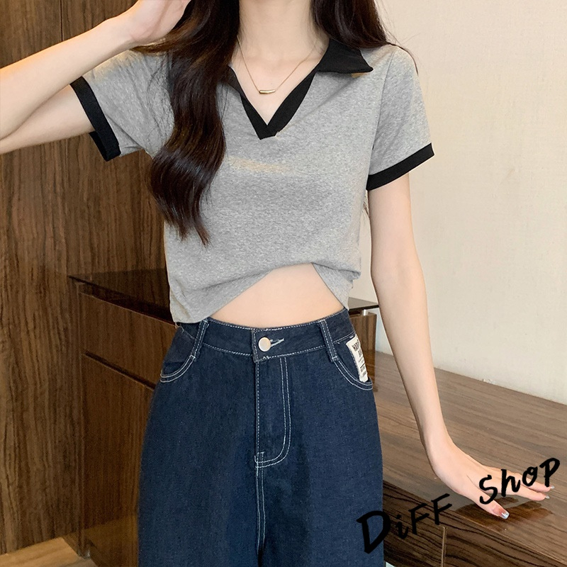 【DIFF】韓版設計感V領顯瘦小眾短袖上衣 短袖t恤 女裝 顯瘦上衣 衣服 寬鬆上衣 素T【T449】【T449】咖啡|【T449】灰色T-shirtsDiFF shop
