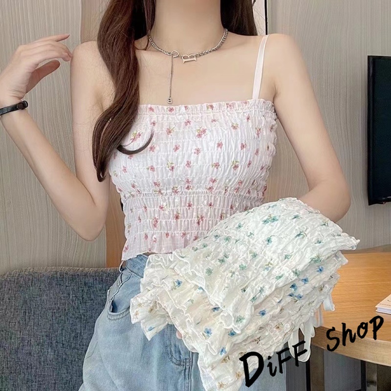 【DIFF】韓版小碎花別緻小眾短版背心 帶胸墊免穿內衣 小可愛 女裝 衣服 短版上衣 短板上衣 運動背心【V349】