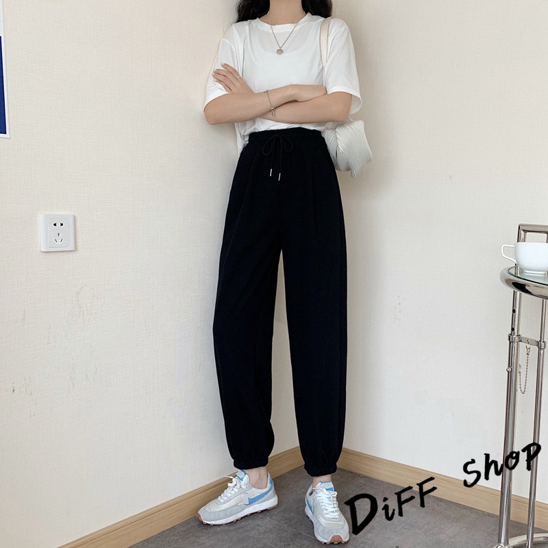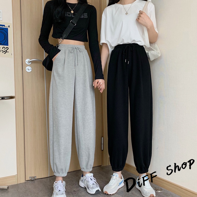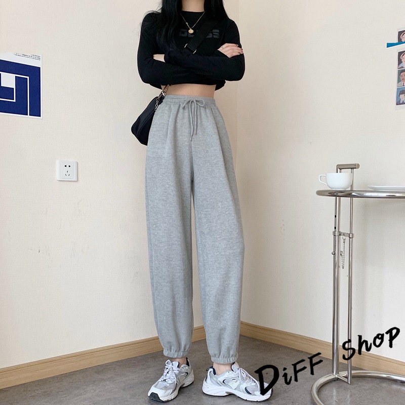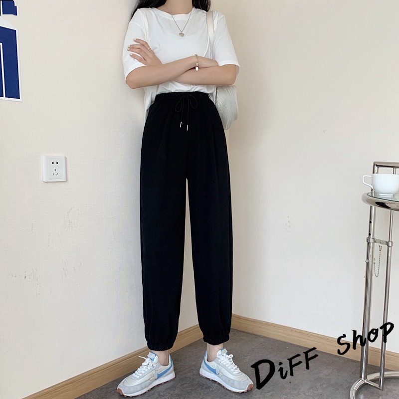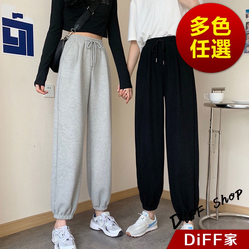 【DIFF】韓版運動風薄款縮口高腰垂感運動褲 褲子 長褲 休閒褲 女裝 運動長褲 長褲 慢跑【P179】【P179】灰色|【P179】黑色PantsDiFF shop