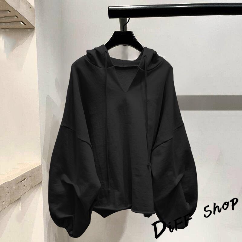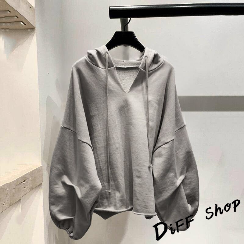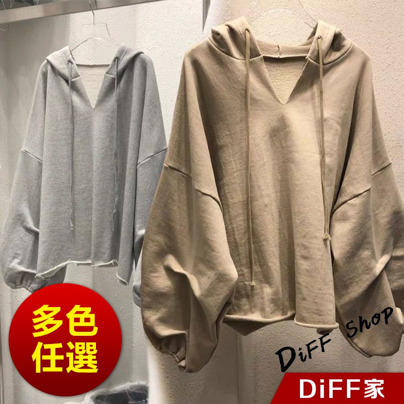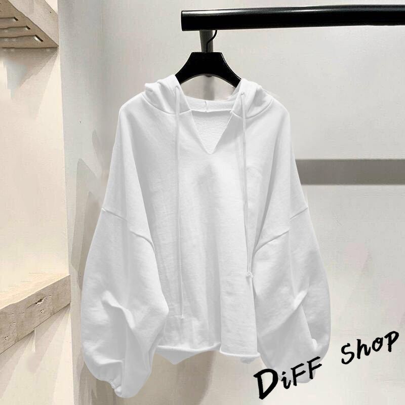 【DIFF】韓版慵懶風寬鬆百搭長袖上衣 長袖上衣 女裝 衣服 寬鬆上衣 顯瘦上衣 素色 長袖t恤 素T 帽T【S97】【S97】白色|【S97】黑色|【S97】灰色|【S97】粉色|【S97】卡其HoodiesDiFF shop