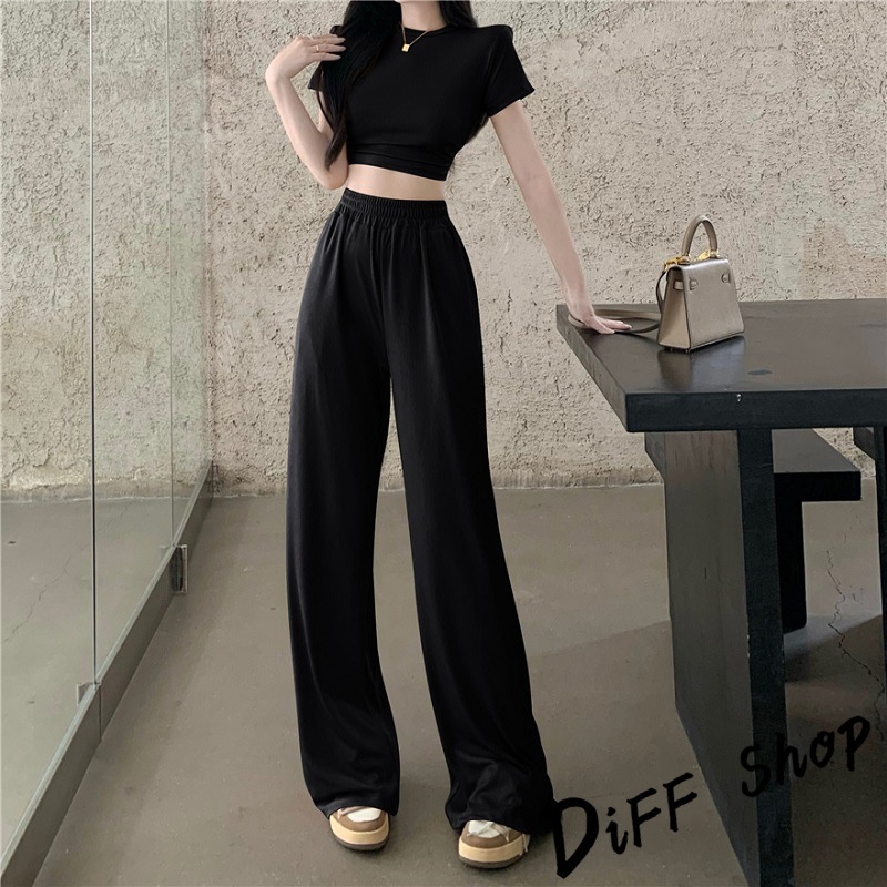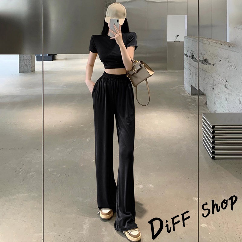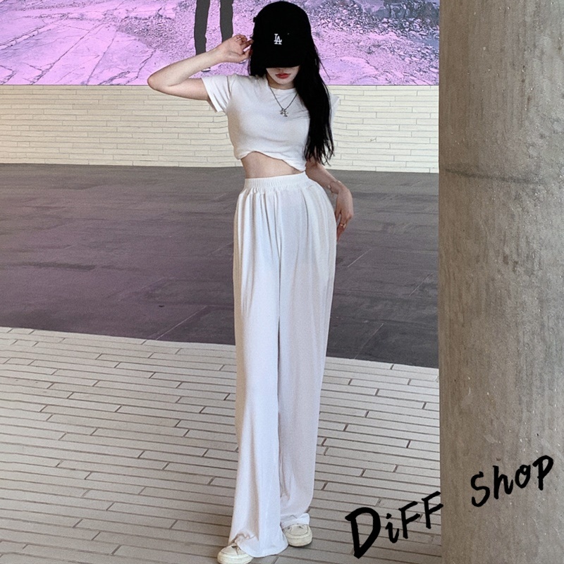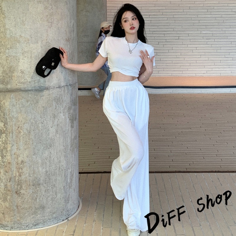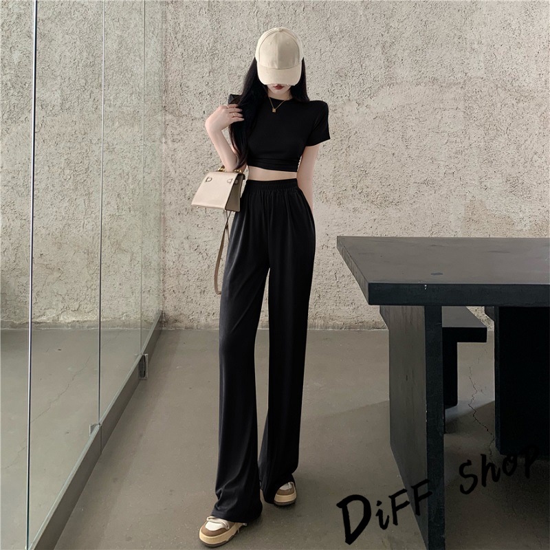 【DIFF】韓版小心機露背短版上衣+薄款寬褲 短袖上衣 短袖t恤 女裝 寬褲 褲子 長褲 女裝 高腰褲【S299】
