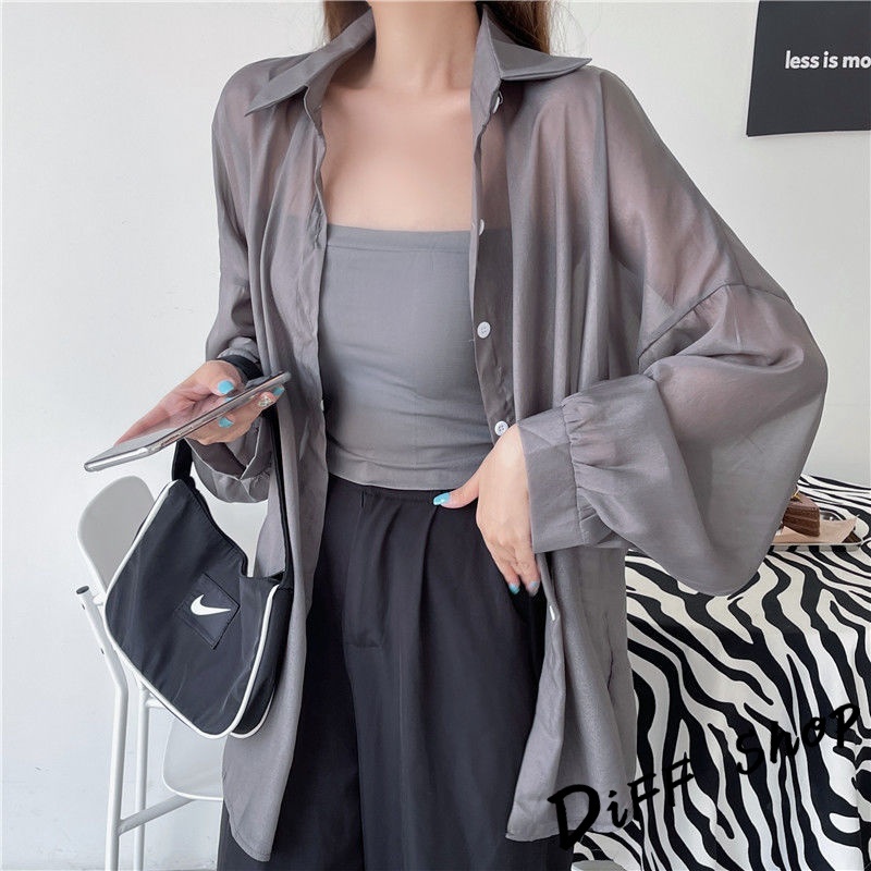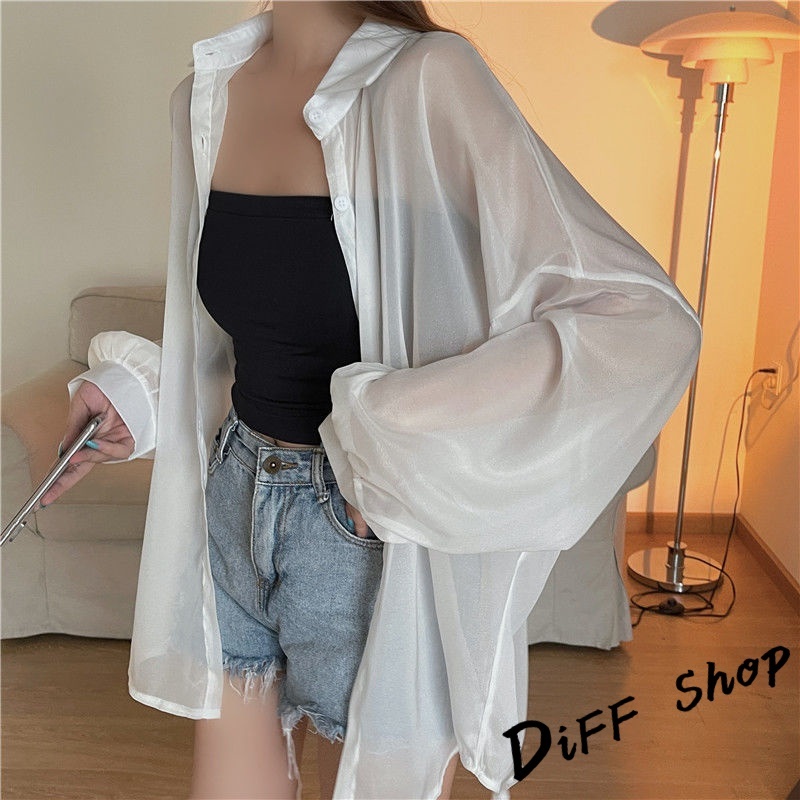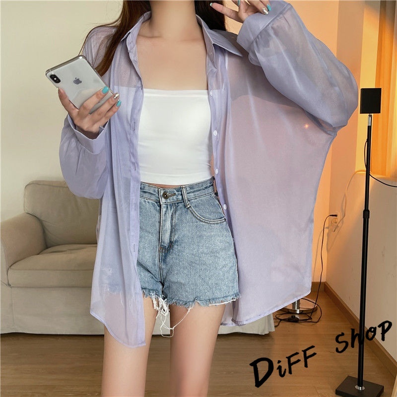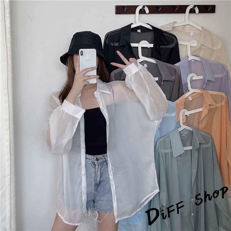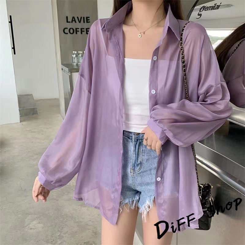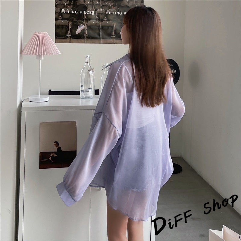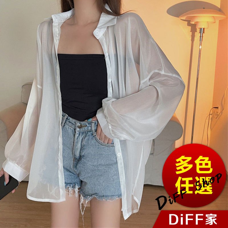 【DIFF】韓版珠光紗小眾薄款微透寬鬆防曬外套 襯衫 上衣 女裝 衣服 外套 長袖上衣 薄外套 罩衫【J217】【J217】白色|【J217】灰色|【J217】淺紫|【J217】黑色|【J217】藍色|【J217】綠色|【J217】粉色|【J217】橙色JacketsDiFF shop