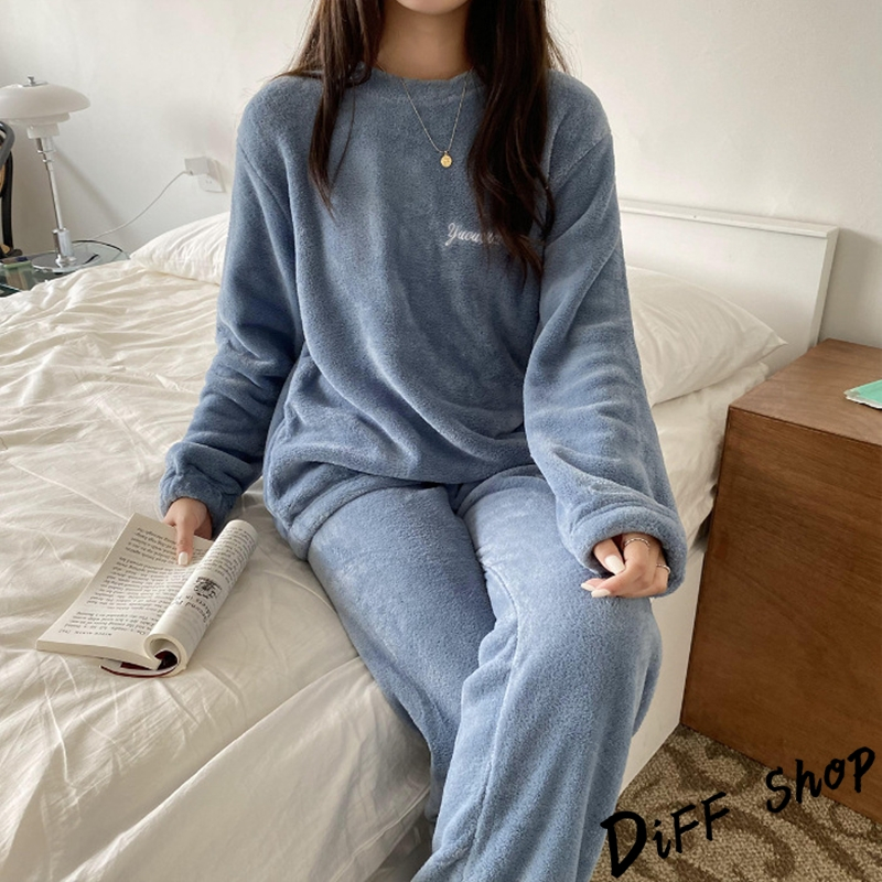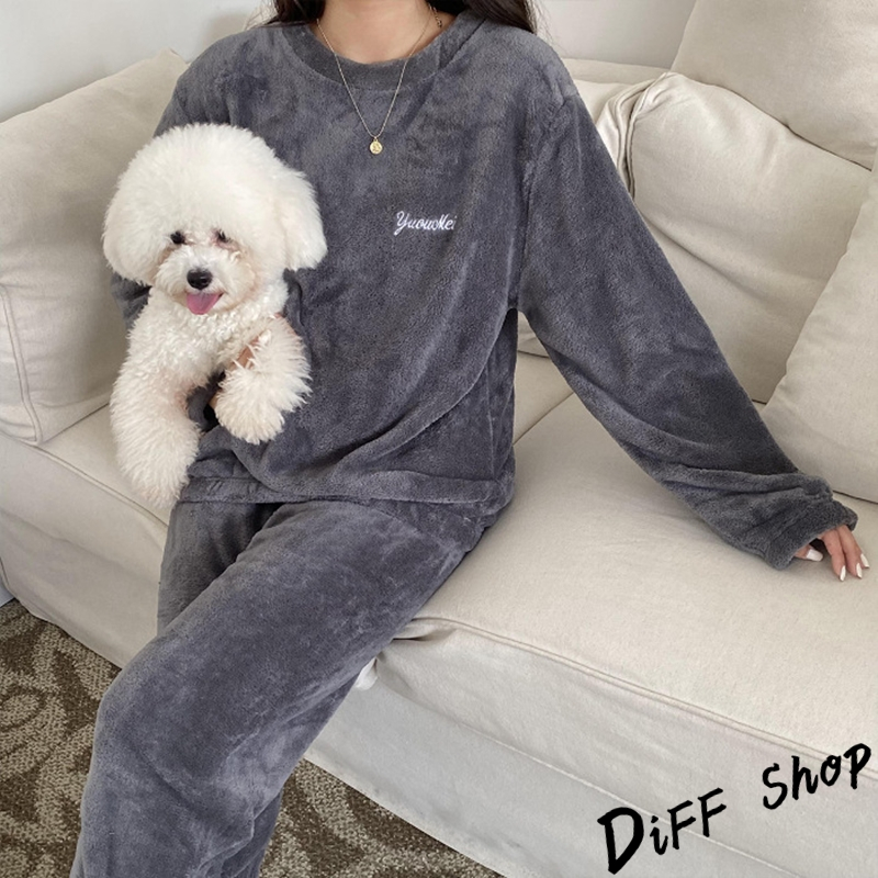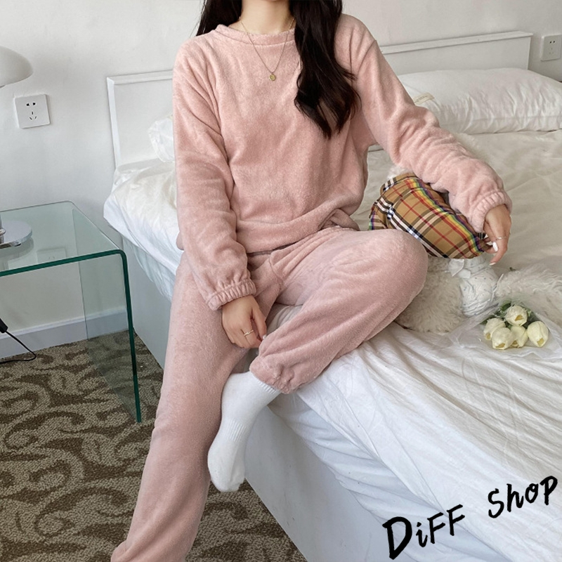 【DIFF】韓版冬季加厚暖暖毛毛睡衣套裝 毛毛上衣+毛毛長褲 長袖上衣 女裝 衣服 發熱褲 發熱衣 長褲子【S294】【S294】霧藍|【S294】可可|【S294】灰|【S294】初戀粉 |【S294】蜜糖紅 Individual SetsDiFF shop