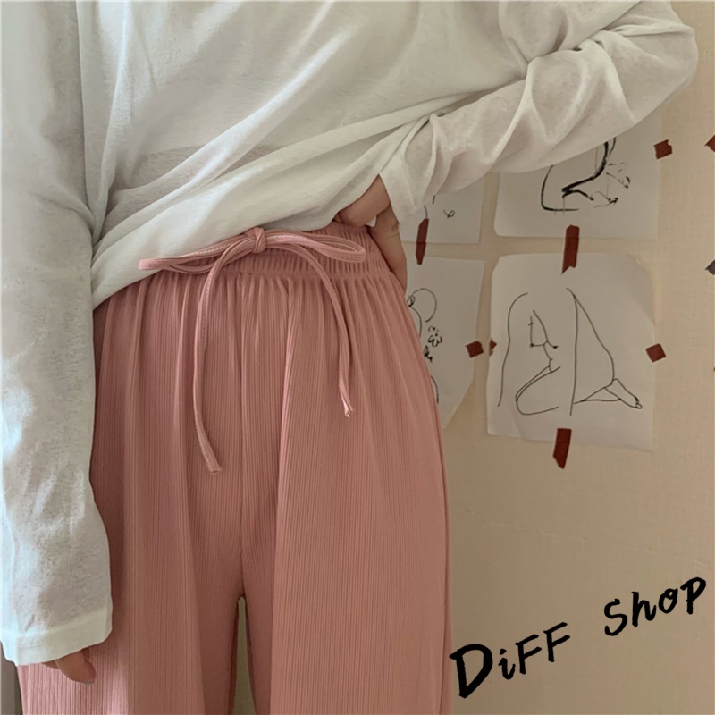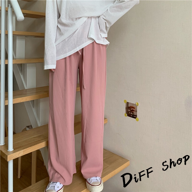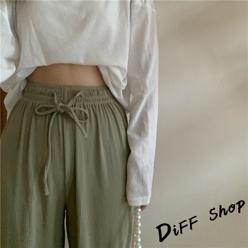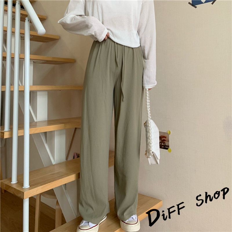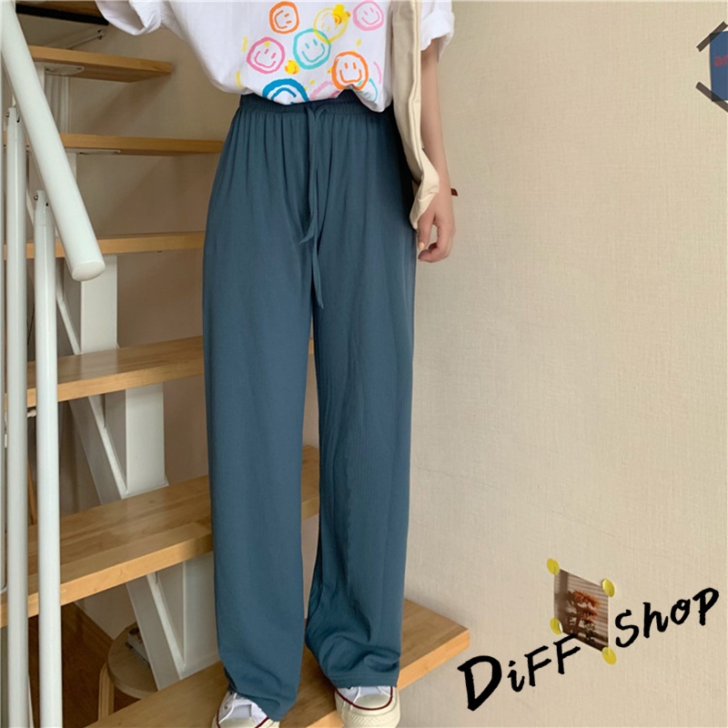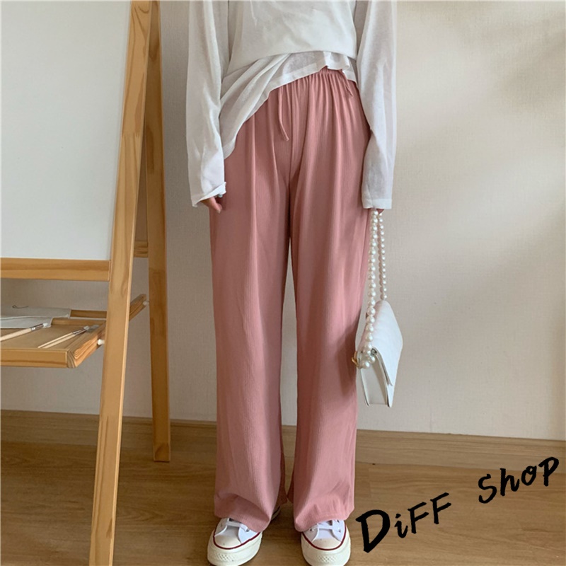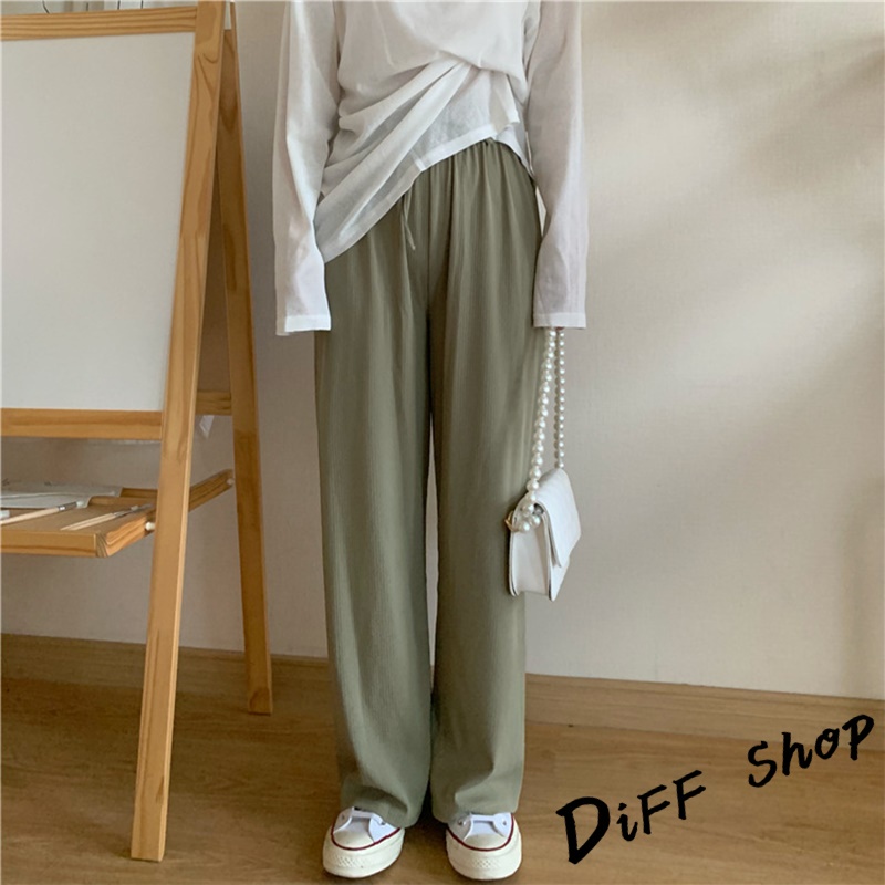 【DIFF】韓版冰絲高腰百搭寬鬆直筒長褲 寬褲 褲子 長褲 休閒褲 女裝 涼感褲女 透氣長褲【P180】【P180】卡其色|【P180】灰色|【P180】綠色|【P180】黑色|【P180】粉色|【P180】杏色|【P180】霧霾藍PantsDiFF shop