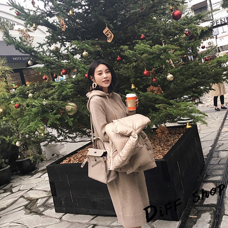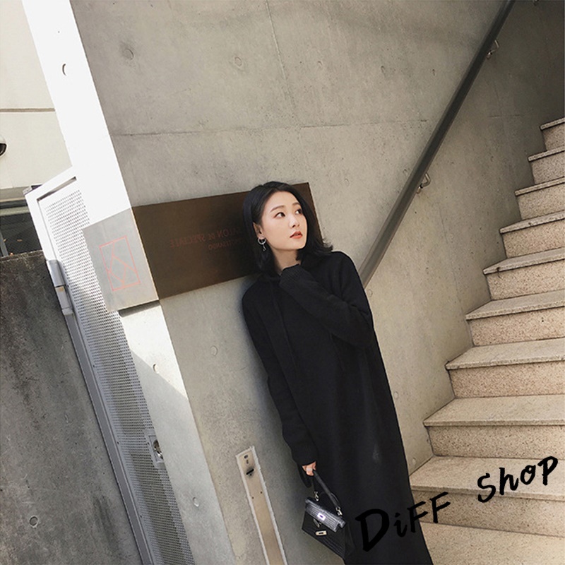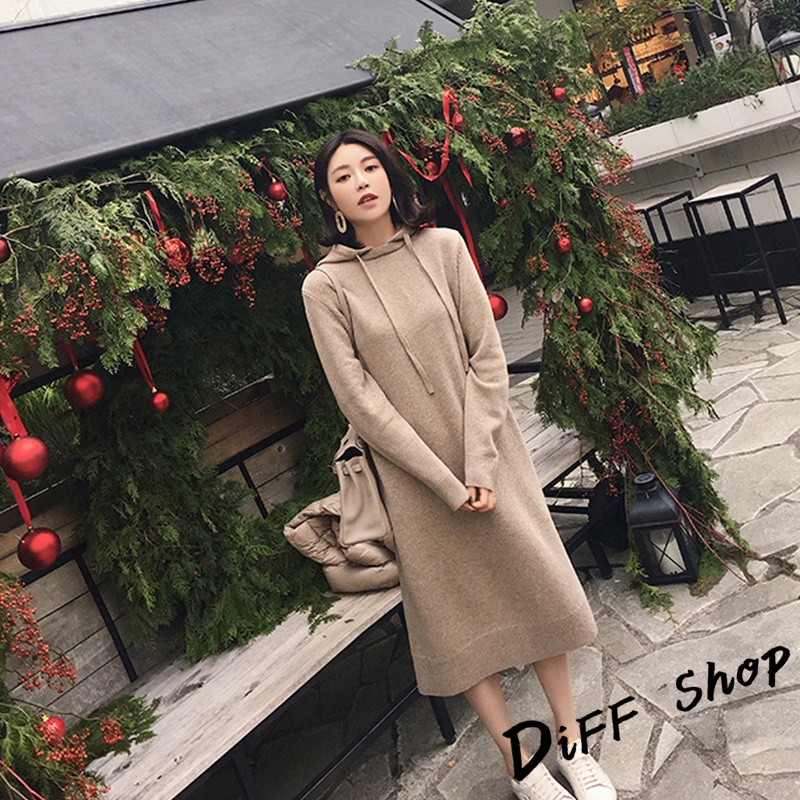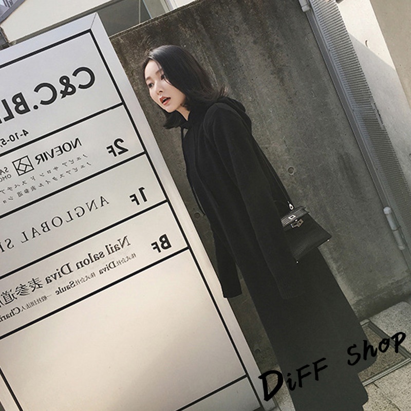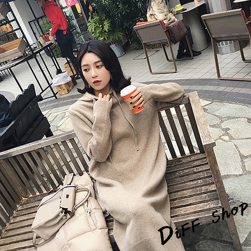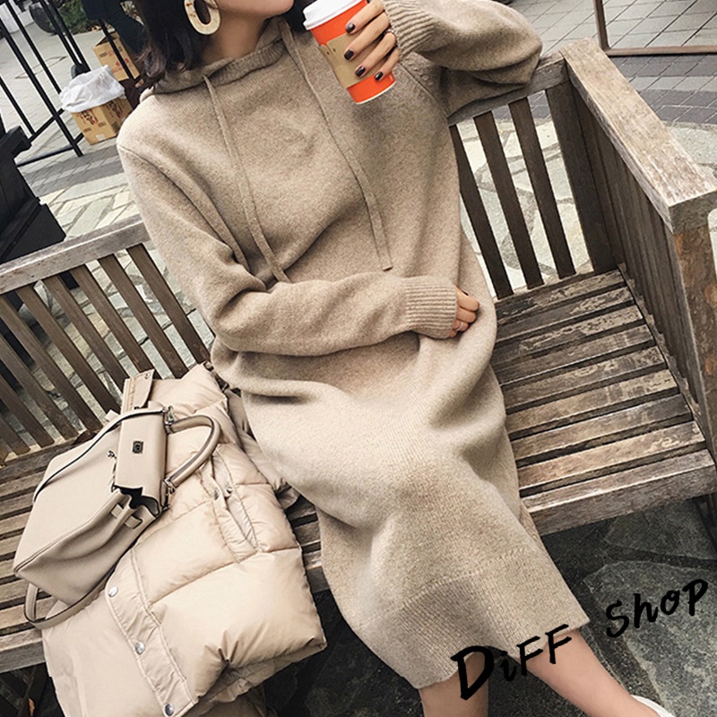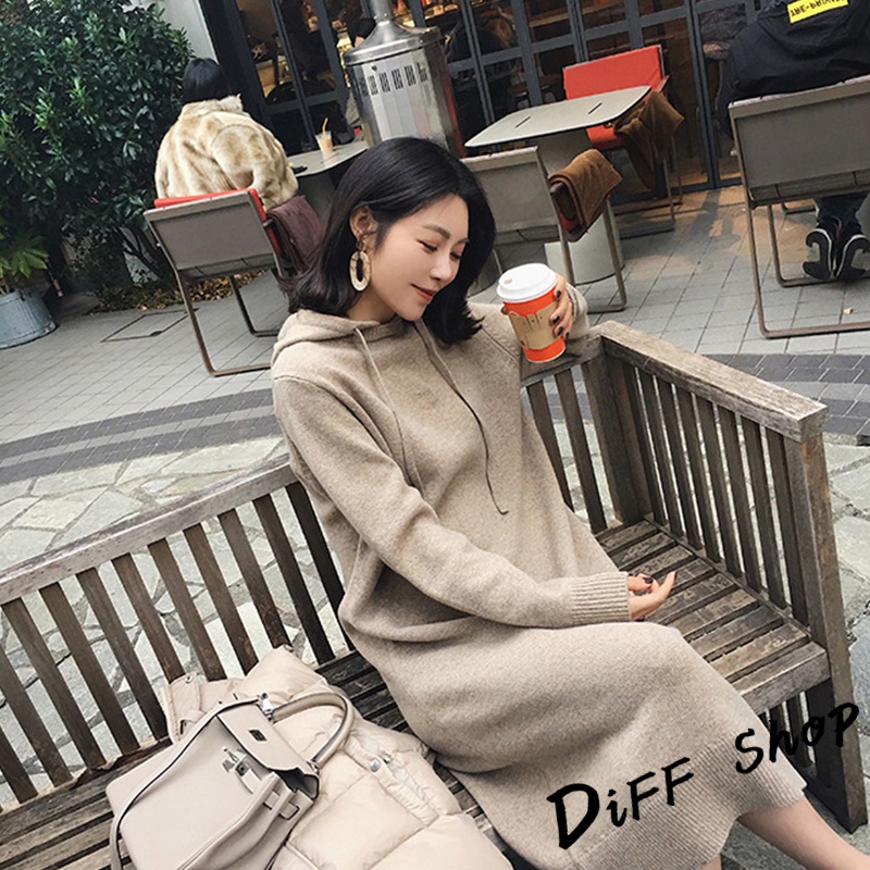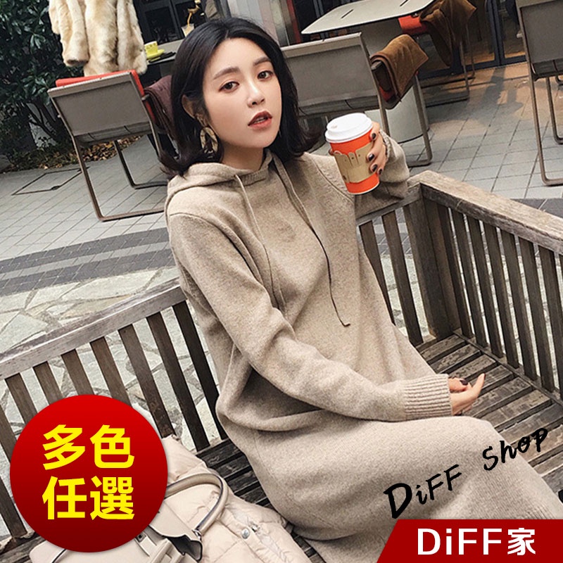【DIFF】韓版寬鬆慵懶風連帽針織連衣裙 長版上衣 毛衣 帽T 長袖上衣 女裝 衣服 寬鬆上衣 顯瘦上衣【S162】【S162】卡其|【S162】黑DiFF shop