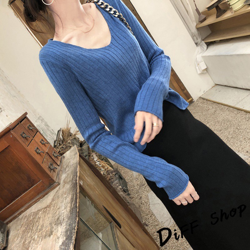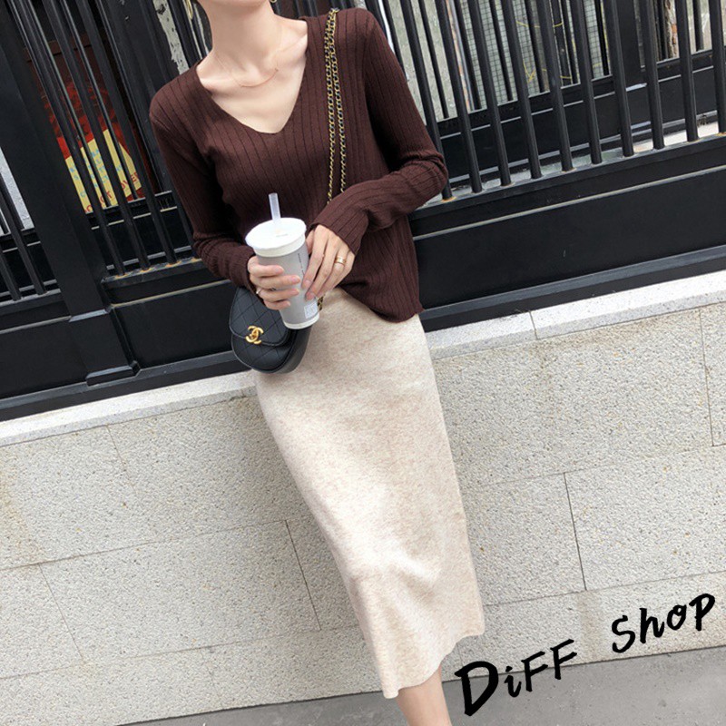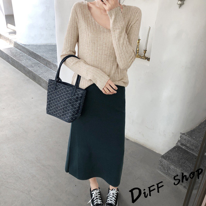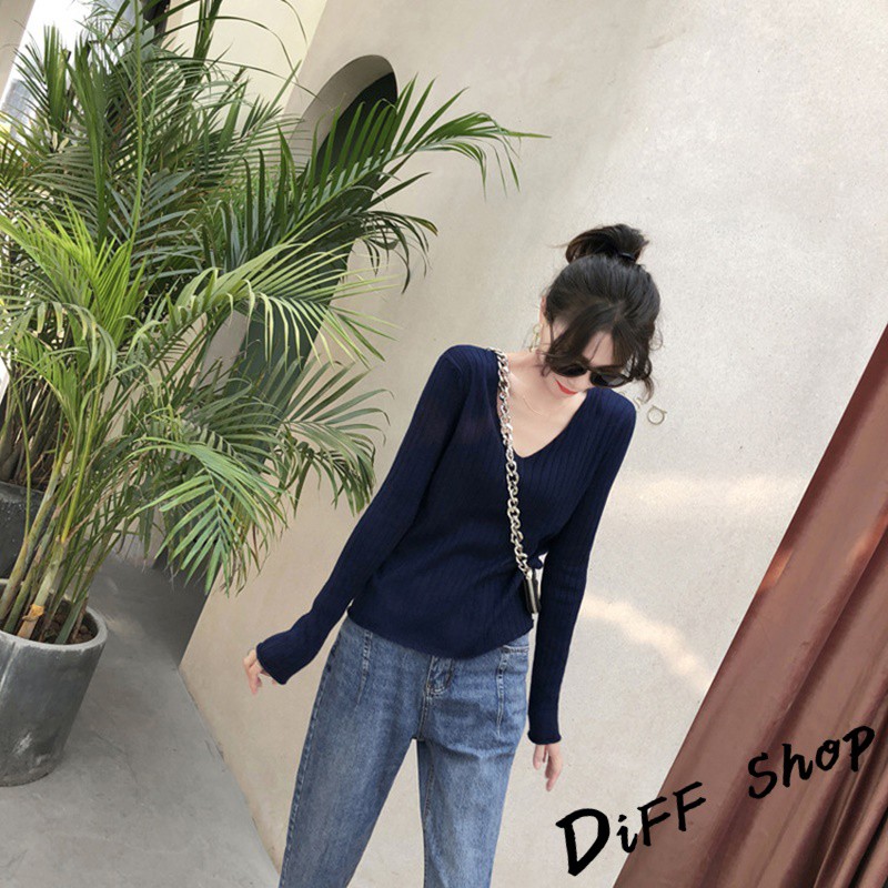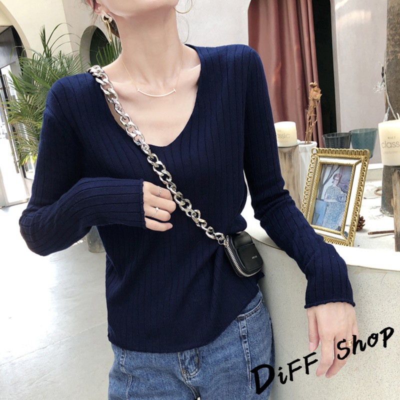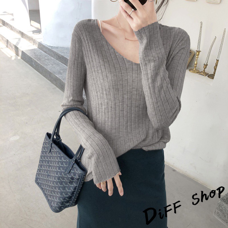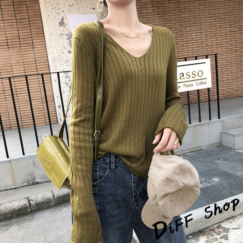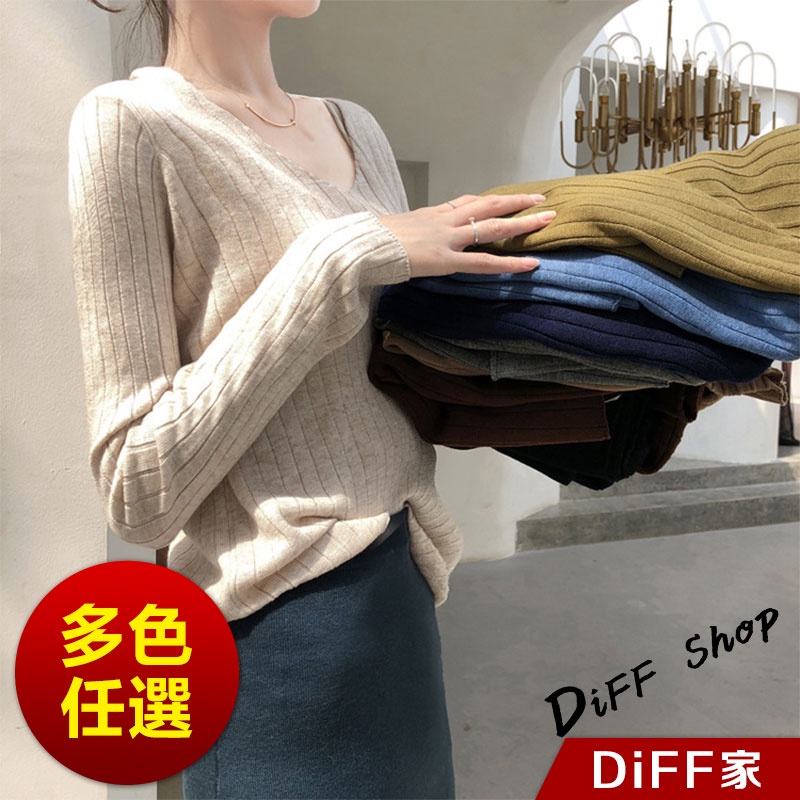 【DIFF】韓版柔軟慵懶風v領針織上衣 長袖上衣 女裝 衣服 寬鬆上衣 顯瘦上衣 素色 冬裝 長袖t恤 素T【W192】【W192】咖啡|【W192】奶茶|【W192】藏青|【W192】灰色|【W192】綠色|【W192】黑色|【W192】杏色|【W192】淺藍T-shirtsDiFF shop