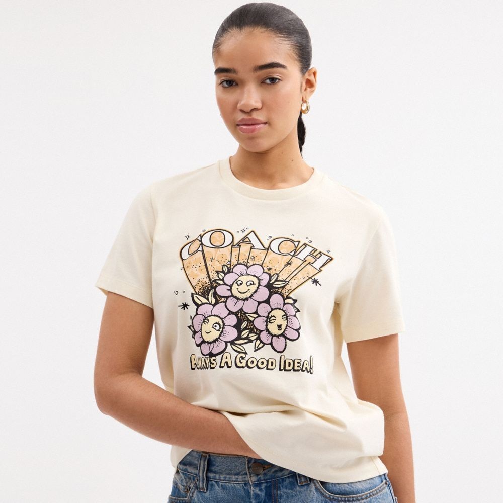 【COACH】棉質PLAY DAISY圖案T恤-奶油色(CBF40)|官方直營奶油色,XXS|奶油色,XS|奶油色,S|奶油色,M|奶油色,L|奶油色,XLT-shirtsCOACH官方旗艦店